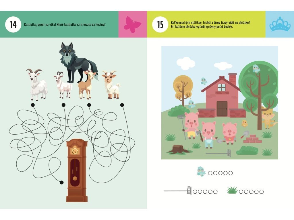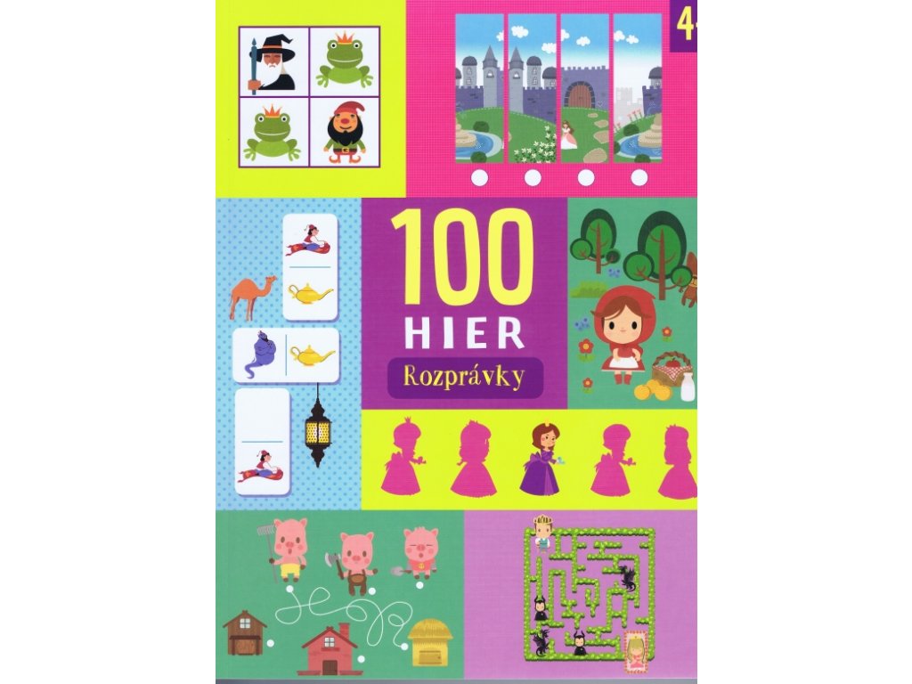 100 hier Rozprávky 4+ Zábavný pracovný zošit s rozprávkovou tematikou pre deti od 4 rokov: 100 hier, hádaniek, bludísk a aktivít na rozvoj logiky a pozornostiSto hier s rozprávkovou tematikou pre štvorročné deti, ktoré sa môžu tešiť na vyfarbovanie, hádanky, bludiská, hľadanie rozdielov a mnoho ďalšieho.Dodatočné parametre