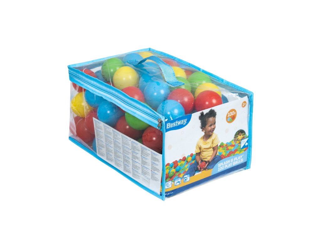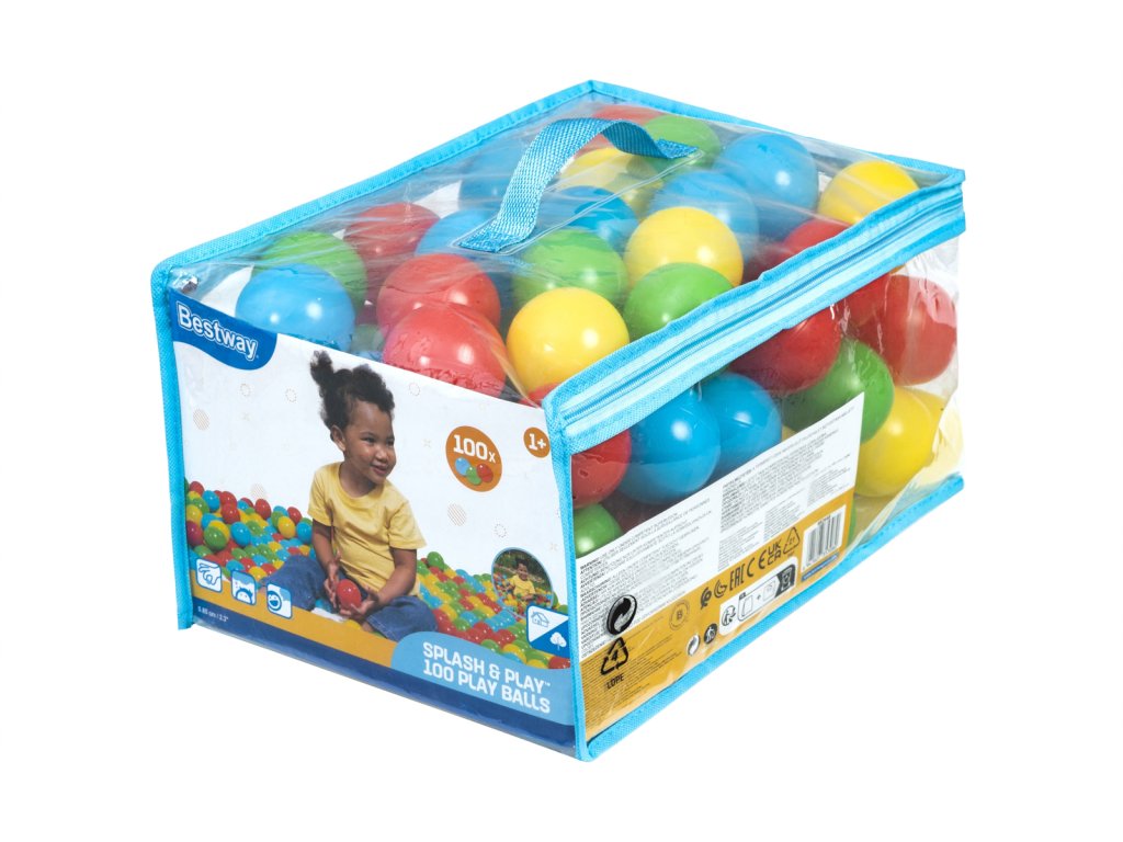 Pevný materiál. Plněno vzduchem. Hladké švy. Může být použito společně s mnoha produkty Bestway. Průměr 5,85 cm. Obsah: 100 herních míčků. Balení:25x19x35cm . Věk: 1+.Dodatočné parametre