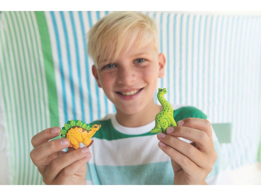 Sada 4M Mould & Paint Dinosaur je zábavná a kreatívna remeselná sada, ktorá deťom umožňuje vytvoriť a vymaľovať si vlastné sadrové figúrky dinosaurov, ktoré navyše svietia v tme. Je to skvelý spôsob, ako spojiť umenie, tvorenie a záujem o prehistorický svet. Kľúčové vlastnosti: Vytvorte si vlastné dinosaurami: Sada obsahuje všetko potrebné na namiešanie, odliatie a vymaľovanie sadrových dinosaurích modelov. Svietiaci efekt: V balení nájdete špeciálnu svietiacu farbu, vďaka ktorej budú vaše výtvory v noci žiariť. Dva v jednom: Hotové modely dinosaurov môžete premeniť buď na magnetky na chladničku, alebo na odznaky (brošne) – v balení sú k dispozícii magnety aj spínacie špendlíky. Obsah sady: Sadrový prášok pre ľahké miešanie (dostačujúci na odliatie 6 dinosaurov). Formu so 6 rôznymi dinosaurými motívmi. Sadu farieb a svietiacu farbu. Štetec. Magnety a spínacie špendlíky. Podrobné pokyny pre odlievanie a maľovanie. Vzdelávacia hodnota (STEM): Tvorenie podporuje kreativitu, jemnú motoriku, rozvíja priestorovú predstavivosť a učí deti sledovať postupy a pokyny. Odporúčaný vek: Odporúča pre deti od 5 rokov, s ohľadom na malé časti a prácu so sadrou a farbami. Ide o obľúbený výrobok, ktorý je ideálny pre daždivé dni, prázdninové tvorenie alebo ako originálny darček pre všetkých fanúšikov dinosaurov a tvorenia.Dodatočné parametre