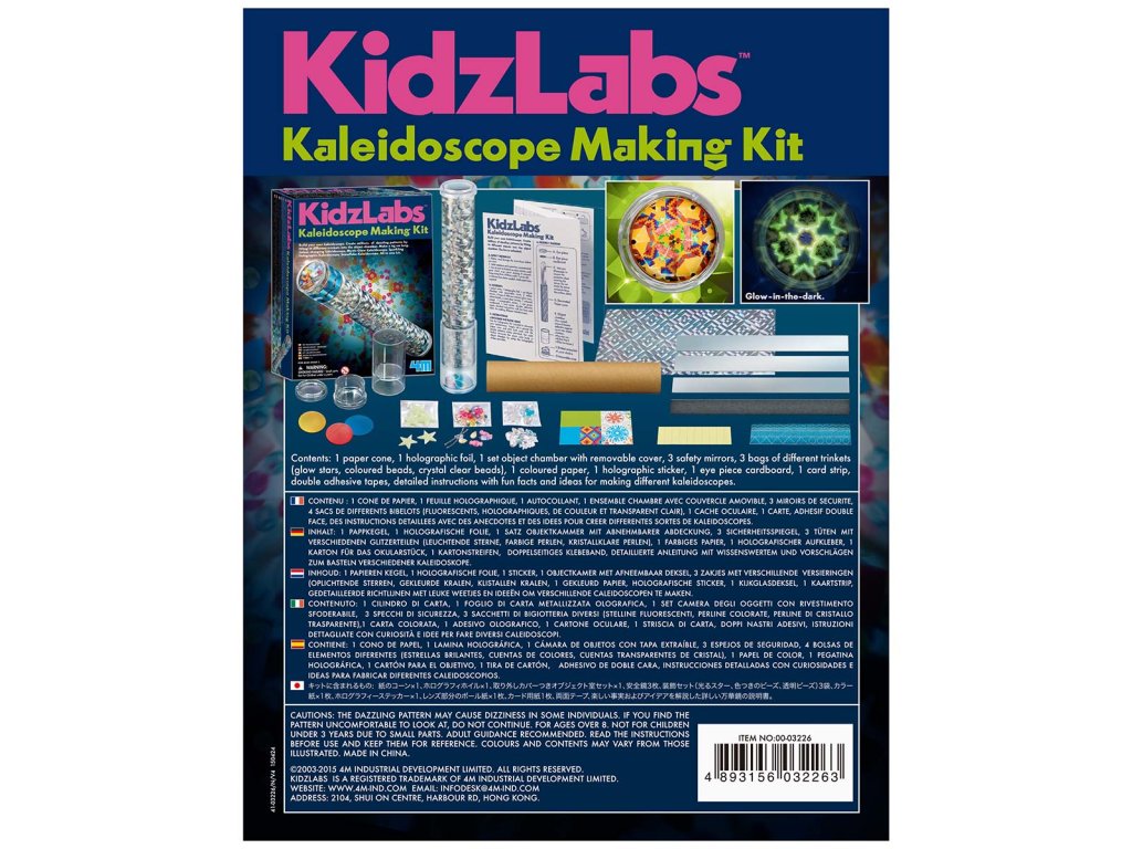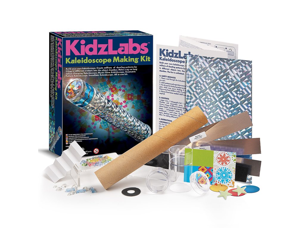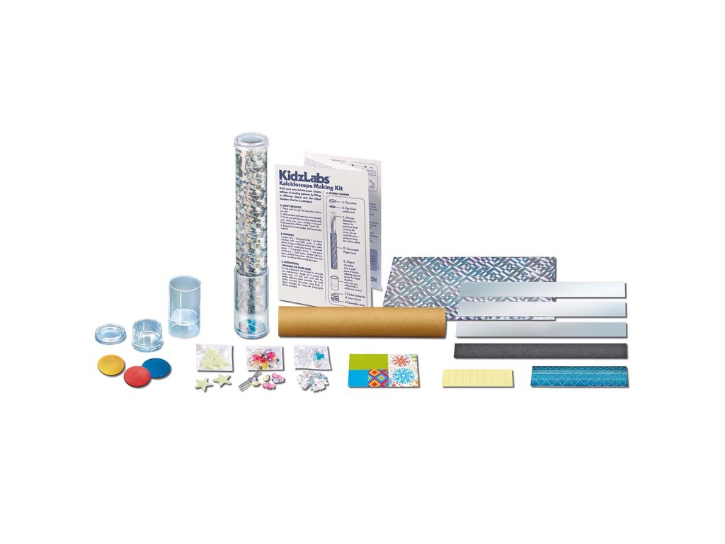 Vyrob si vlastný kaleidoskop. Vytvor milióny oslnivých vzorov z rôznych drobností. 25 cm dlhý farebný kaleidoskop. V sade nájdeš tajomný žiarivý kaleidoskop, geometrický kaleidoskop, kaleidoskop so snehovými vločkami.Dodatočné parametre