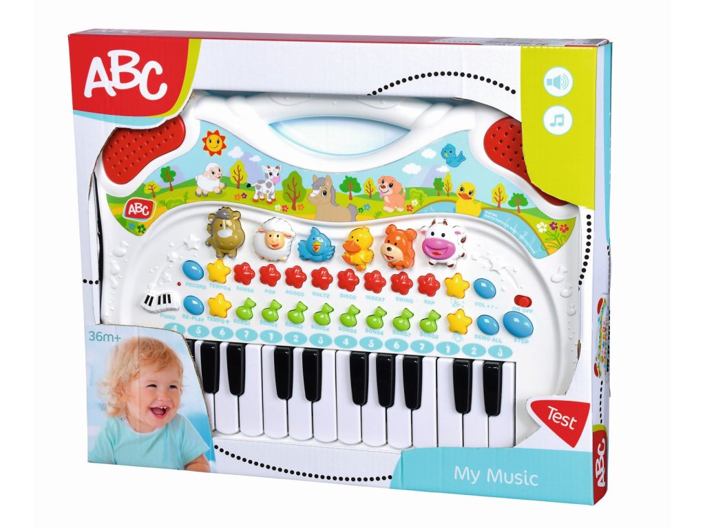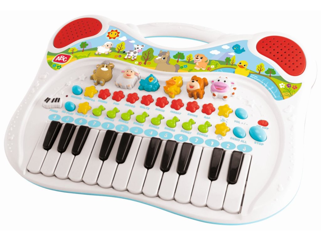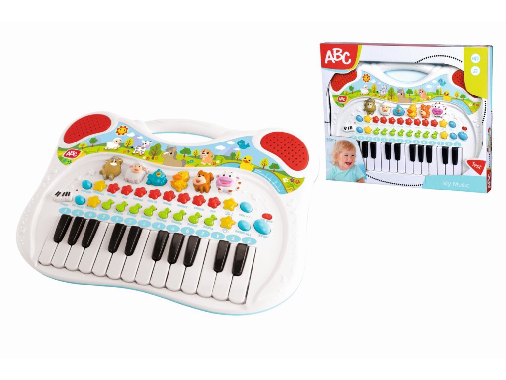 Piano s rôznymi zvukovými efektmi a funkciami. S farebnými tlačidlami a veľkou samolepkou s roztomilými motívmi zvieratiek. Farebné gombíky zvieratiek v tvare koníka, ovečky, vtáčika, kačičky, psíka a kravičky. Stlačením klávesu deti spoznajú príslušné zvuky zvierat a môžu ich napodobniť alebo zapojiť zvieracie zvuky do svojich skladieb. Okrem zvukov zvierat má detská klávesnica množstvo ďalších funkcií. Môžete prehrávať rôzne skladby a melódie, meniť rytmus alebo nahrávať skladby a prehrávať ich. Je to nielen veľká zábava, ale aj tréning sluchu, zmyslu pre rytmus a tréning motoriky. Tvorte hudbu, učte sa a objavujte. Vďaka praktickej rukoväti na prenášanie je možné ľahko prenášať. Rozmery: 38 × 32 cm.Dodatočné parametre
