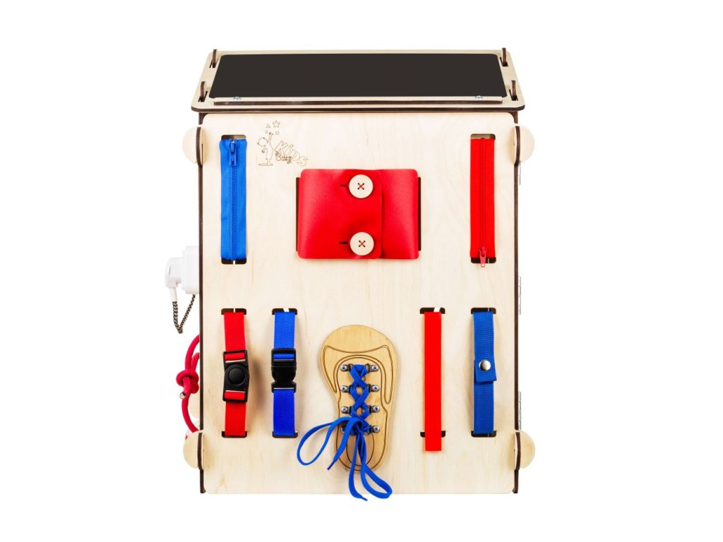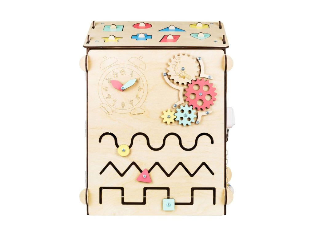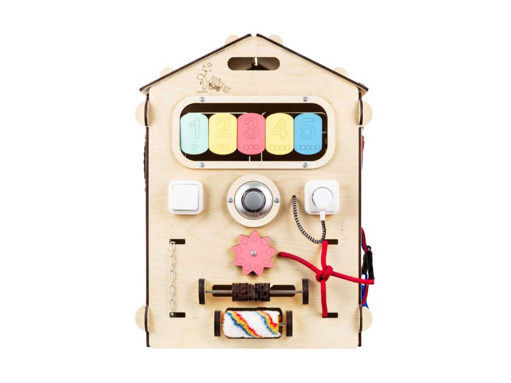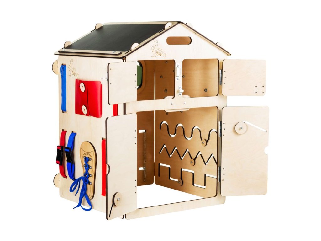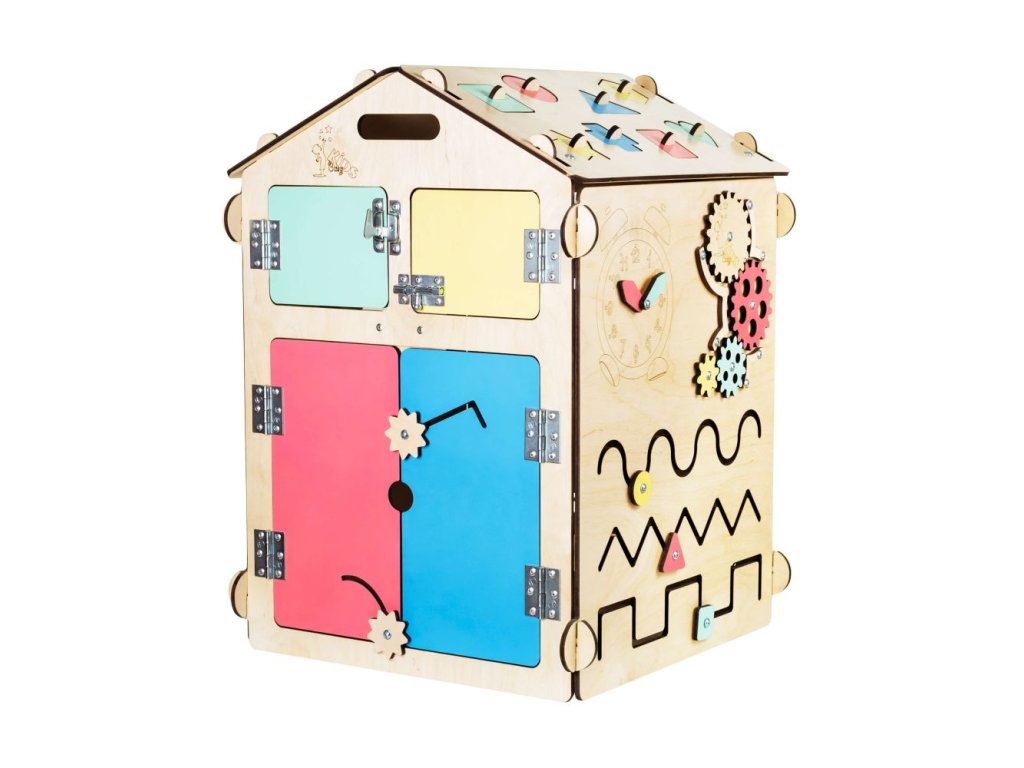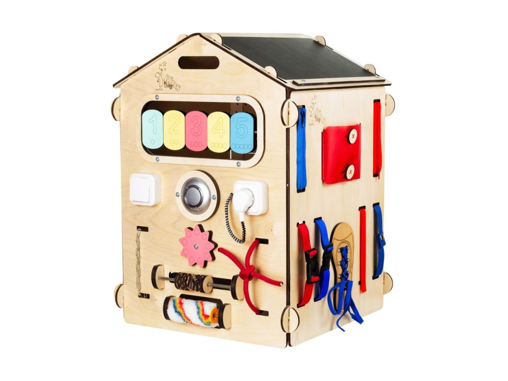 Activity Board domček funguje ako interaktívna hračka. Využíva techniku Montessori a predmety rozvíjajúce zmyslové a motorické funkcie. Podporuje logické myslenie a kreativitu. Skladá sa zo šiestich rôznych interaktívnych dosiek, ktoré môžu byť zložené do tvaru domčeka. Výhodou je, že ho môžete aj rozobrať a použiť ako samostatné dosky. Metóda Montessori je alternatívny program pre vzdelávanie detí. Zameriava sa predovšetkým na rozvíjanie poznatkov a zručností dieťaťa, ktoré by malo prebiehať bez stresu a ďalších negatívnych prejavov, pretože môžu ovplyvňovať psychiku dieťaťa. Montessori aktivity vykonáva dieťa pre seba, pre svoje vlastné uspokojenie. Robí tak preto, že to samé chce a nie preto, že sa niečo musí naučiť. Princípom techniky Montessori je rešpektovanie dieťaťa a považovanie ho za samostatnú mysliacu bytosť. Rodič či učiteľ ho má považovať za rovnocenného partnera a nemal by vystupovať ako nedotknuteľná autorita. Montessori pomôcky majú za úlohu vytvoriť príjemné prostredie pre dieťa, aby sa mohlo sebarealizovať. Montessori domček je ideálnou hračkou pre deti od 1 do 8 rokov. Vaše deti zabaví na niekoľko hodín a vy tak budete mať chvíľu aj pre seba. Navyše, domček poslúži aj ako skvelá skrýša či malý príbytok, do ktorého sa hravo zmestia aj väčšie deti. Interaktívny domček je vyrobený z 98 % prírodných materiálov a spĺňa normu EN-71 pre detské hračky (číslo certifikátu ITAH18013499). Nemusíte sa obávať žiadneho nekvalitného spracovania. ELIS DESIGN si potrpí na precízne a kvalitné produkty a materiály. Je vyrobený z brezovej preglejky a všetky farby a laky sú na vodnej báze. Pre vaše deti sú tak maximálne bezpečné. Nenájdete tu ani žiadne skrutky, všetko je precízne nitované. Prečo si vybrať práve Montessori Activity Board od Elis Design? viacero aktivity boardov zložených do jedného domčekav 2v1: montessori pomôcka a zároveň skrýša kvalitné spracovanie bez nebezpečných skrutiek, namiesto nich je všetko nitované prírodné materiály ako napr. brezová preglejka farby a laky na vodnej báze sú maximálne bezpečné pre deti norma EN-71 pre detské hračky Technické parametre a ďalšie užitočné informácie: rozmery: 60 x 40 x 40 cm rozmery krabice: 68 x 52 x 24 cm váha 7 kg prírodná drevená farba balené v kartónovej krabici 62 x 49 x 22 cm bezpečná doprava k Vám domov, nemusíte sa báť zničenia pri dodávke tovaru Odporúčaný vek: Certifikované od 12 mesiacov (vyhrajú sa s ním ale aj mladšie deti). Upozornenie: domček je vyrobený z prírodného materiálu, ktorý môže mať odlišný odtieň (farbu) ako na fotografiách. Môžu sa striedať tmavé a svetlé odtiene.