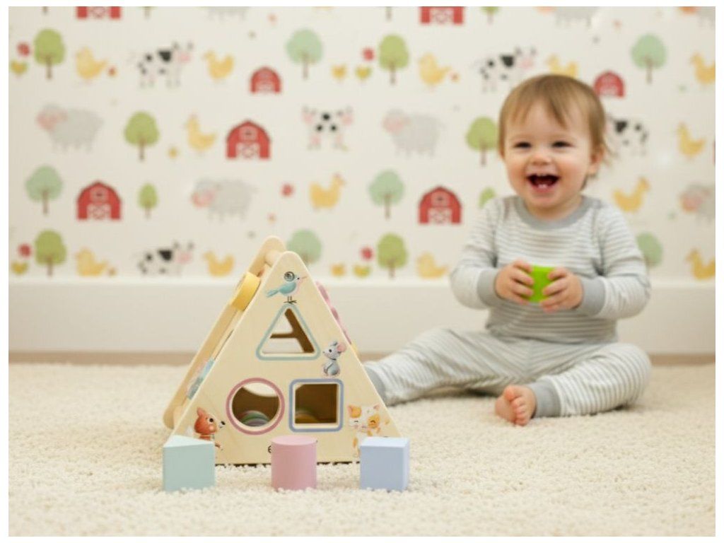 Interaktívny dizajn Nová generácia drevených hračiek eliNeli s originálnymi, ručne maľovanými ilustráciami, prináša jedinečný príbeh života v okolí statku. Každá strana trojuholníka ponúka hravú aktivitu, ktorá motivuje deti objavovať a učiť sa, s jemnými pastelovými farbami a detailnými ilustráciami. Trojuholník rozvíja jemnú motoriku, koordináciu rúk a očí, logické myslenie aj kreativitu. Nové ilustrácie zároveň podnecujú fantáziu dieťaťa a podporujú tvorenie vlastných príbehov, čím spájajú zábavu s učením. Bezpečné materiály Hračka je vyrobená z prírodného dreva, starostlivo spracovaného, aby bola hladká a bez ostrých hrán, čo zaručuje bezpečné hranie. Použitie kvalitného dreva zároveň zaisťuje dlhú životnosť a odolnosť. Deti si môžu trojuholník jednoducho prenášať a hrať sa s ním doma aj na cestách. Vzdelávacie prvky Activity board so zvieratkami v trojuholníkovom prevedení ponúka 5 zábavných aktivít: počítadlo, bludisko, ozubené kolieska, vkladačku a hru Hmataj a nájdi. Každá aktivita je navrhnutá tak, aby deti motivovala na objavovanie a prirodzené učenie. Vďaka týmto prvkom deti rozvíjajú jemnú motoriku, koordináciu ruky a oka, logické myslenie a kreativitu. Súčasne sa učia rozpoznávať farby, tvary a zvieratká, čo podporuje ich kognitívne schopnosti a fantáziu. Nová generácia ilustrovaných drevených hračiek eliNeli - s príbehom a dušou! Sú to čarovné, ručne maľované ilustrácie od talentovanej ilustrátorky Niny Bohušovej. V dobe digitálnej, my vsádzame na ľudskú tvorivosť a zručnosť. Každý obrázok na týchto hračkách je originálne umelecké dielo. Nechajte sa očariť jemnými pastelovými tónmi a otvorte deťom okienko do sveta príbehov a tajomstiev. Emócie v tvári: Zvieratká majú realistické farby, ale ich štylizovaný výraz tváre je plný citu. V ich očiach uvidíte radosť, zvedavosť alebo možno aj štipku šibalstva. Podnecujú fantáziu: Scény sú navrhnuté tak, aby podnecovali vaše dieťa na kladenie otázok: Čo sa tu stalo? Aký príbeh sa práve odohráva? Hračka tak rozvíja nielen motoriku, ale aj kreatívne myslenie a empatiu. Technické parametre Rozmer cca 18 x 14 x 16 cm Rozmer balenia 19,5 x 15 x 17,5 cm Hmotnosť cca 600 g Materiál preglejka, brezové drevo, MDF, plast, kov Certifikácia CE, 2009/48/ES, TÜV Rheinland, EN 71-1, 2 a 3 Vek od 1 roka, 12m+ Výhody produktu Drevený trojuholník je vyrobený z kvalitného, starostlivo opracovaného dreva s hladkými hranami pre bezpečnú hru. Prírodný materiál zaisťuje dlhú životnosť a odolnosť hračky. Ponúka aktivity, ktoré rozvíjajú motoriku, koordináciu rúk a očí, logické myslenie aj kreativitu. Deti si užijú aj ručne maľované ilustrácie zvieratiek z farmy, ktoré podnecujú fantáziu a objavovanie nových príbehov. Výhody produktu Podpora motoriky Pomáha rozvíjať jemnú motoriku a koordináciu rúk a očí. Bezpečné materiály Vyrobený z nezávadných materiálov, ktoré sú bezpečné pre deti. Vzdelávacie prvky Obsahuje prvky, ktoré podporujú logické myslenie a kreativitu. Jednoduchá údržba Materiály sú odolné a jednoducho sa čistia, čo uľahčuje údržbu. Prenosnosť Ľahký a jednoducho prenosný, ideálny na domáce použitie aj na cesty. My v ELIS DESIGN sme sami rodičia detí rôzneho veku a záleží nám na tom, s čím sa hrajú. Preto aj pre vaše deti vytvárame a vyberáme zmysluplné hračky z kvalitných, najlepšie prírodných, materiálov, inšpirované montessori, ktoré nielen zabavia, ale aj rozvíjajú. Je produkt vhodný pre malé deti? Áno, produkt je navrhnutý tak, aby bol bezpečný a vhodný pre deti od 12 mesiacov. Aké materiály sú použité? Produkt je vyrobený z nezávadných a bezpečných materiálov. Je hračka jednoducho prenosná? Áno, hračka je jednoducho prenosná, ideálna na doma aj na cesty. Ako sa activity board čistí? Activity board je vyrobený z materiálov, ktoré sa jednoducho čistia vlhkou handričkou. Rodičovský ťahák na chytré hranie a inšpiráciu z montessori pedagogiky https://play.elineli.eu/sk/ Viac o produktoch eliNeli https://www.elineli.eu/sk/Dodatočné parametre