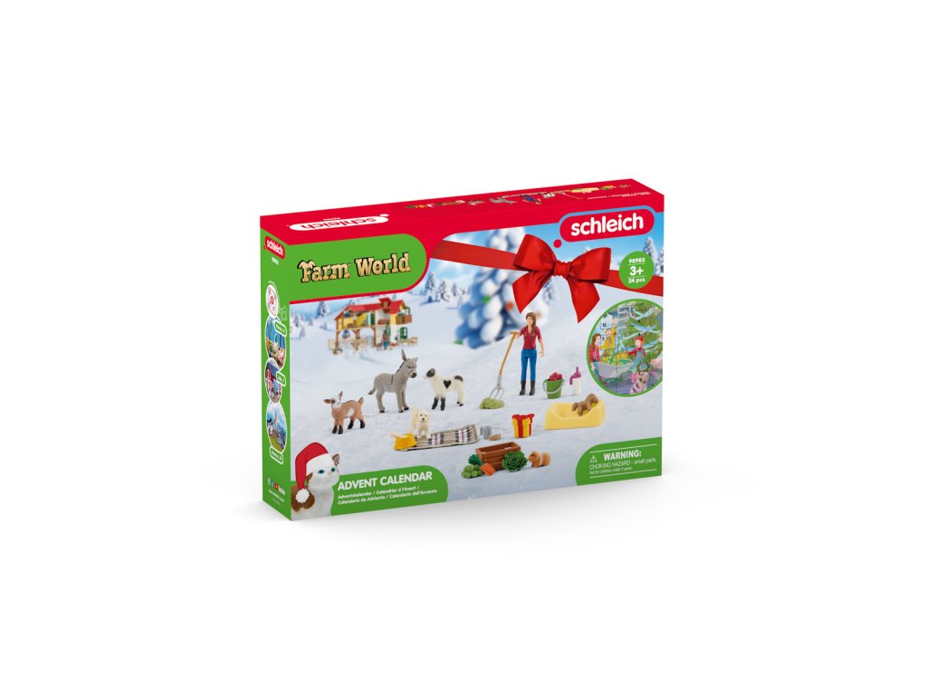 Adventní kalendář Schleich, ze série FARM WORLD 2023, Domácí zvířata skrývá za 24 dvířky skvělá překvapení a pomůže zkrátit čekání na svátky. Adventní kalendář obsahuje řadu skvělých zvířat a spoustu příslušenství pro pořádnou zábavu. Figurky Schleich jsou mimořádně detailně propracované, láskyplně malované a umožňují dětem hrát si a zároveň se učit a poznávat zvířátka žijící na farmě. Rozměry balení: 28,5 x 39 x 7,5 cm Věk: 3+Dodatočné parametre