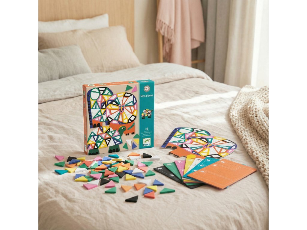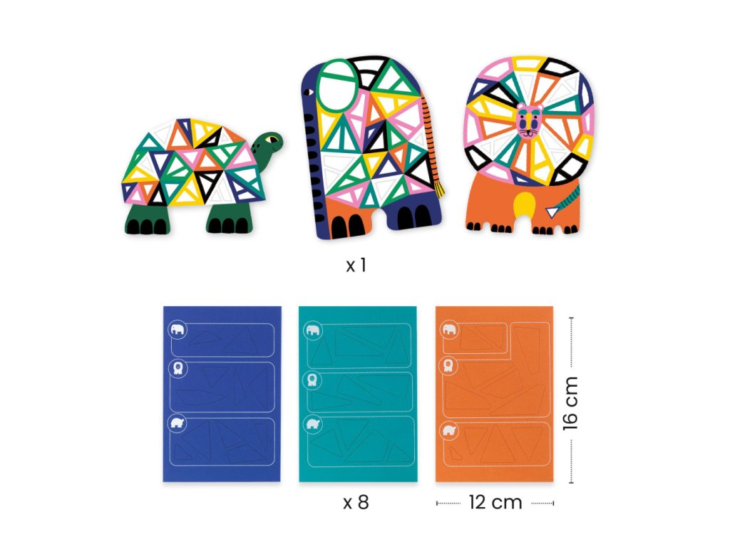 Afrika Odnímateľné mozaikové samolepky Ozdob si zvieratká zo savany Vydaj sa na tvorivú cestu do africkej divočiny! Sada Afrika umožní deťom premeniť tri zvieratká zo savany na farebné mozaikové umelecké dielka. Hrubé, farebné a opakovane použiteľné samolepky skvele padnú do detských rúk a vďaka rôznym tvarom a farebným okrajom je ich nalepovanie prirodzené, jednoduché a veľmi zábavné. Každé zvieratko má svoj vlastný piktogram, ktorý deťom uľahčuje výber správnej nálepky, a ilustrovaný návod krok za krokom im dáva slobodu tvoriť úplne samostatne. Táto kreatívna sada podporuje jemnú motoriku, trpezlivosť aj predstavivosť a zároveň v deťoch prebúdza lásku k prírode. To všetko v krásnom, ekologickom balení s FSC® certifikátom.Dodatočné parametre