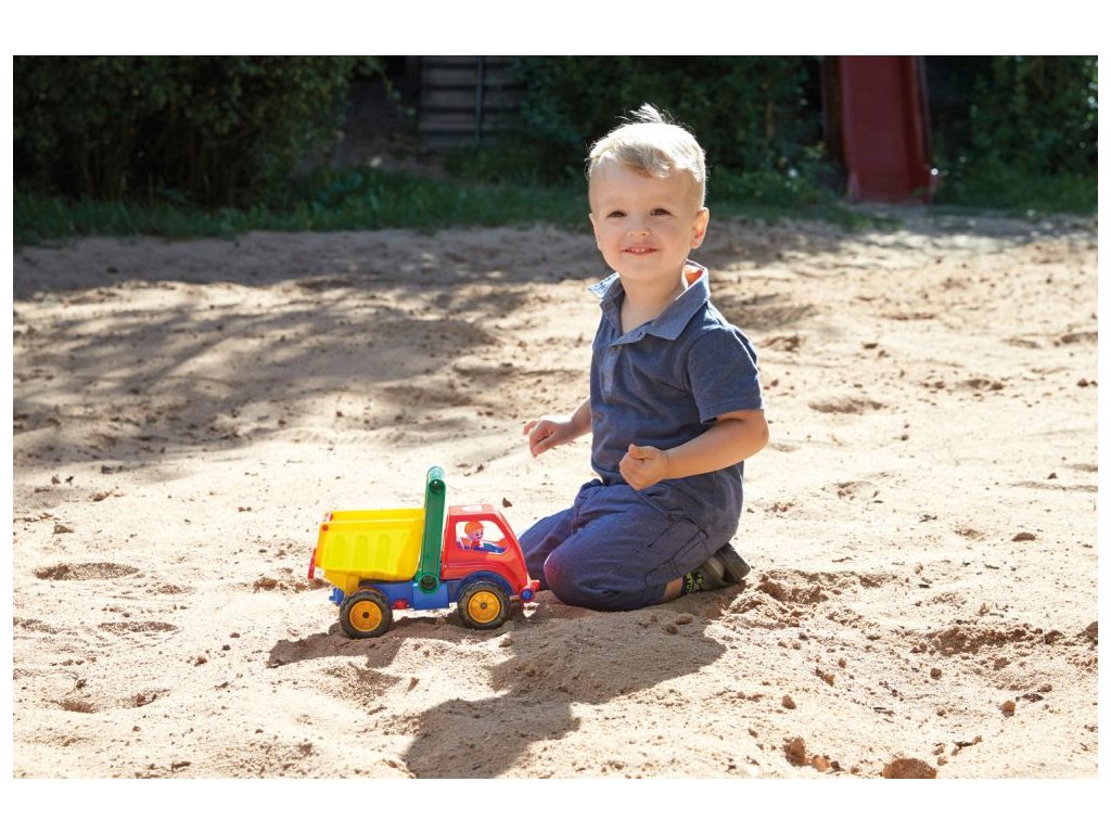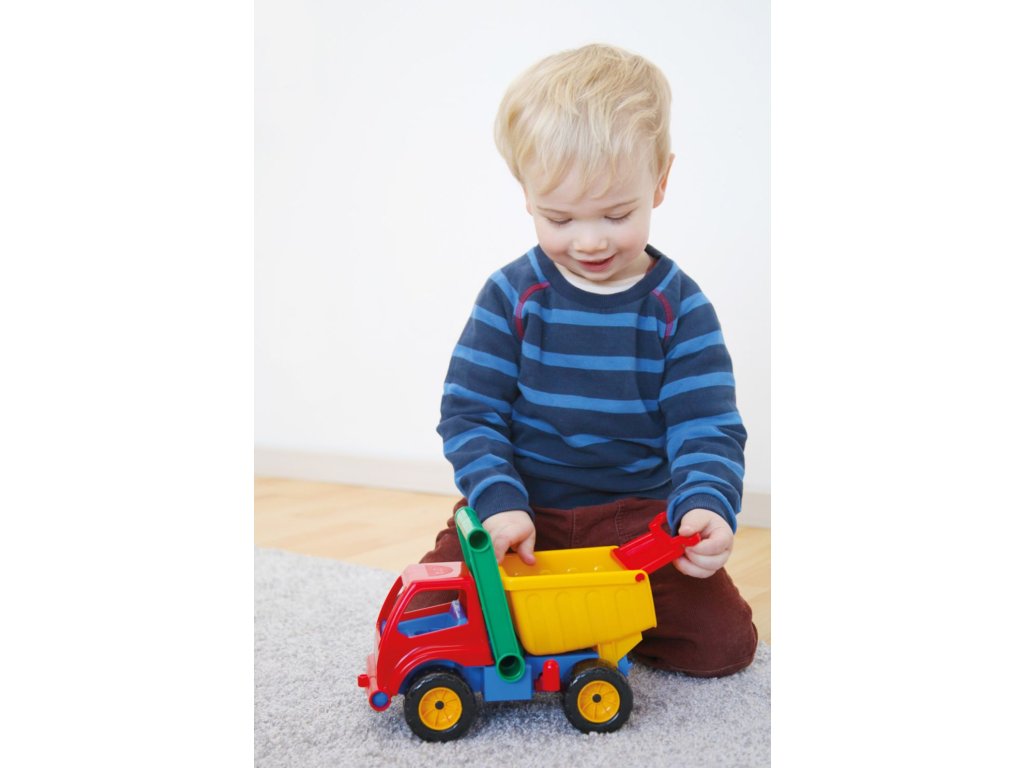 Aktívne auto sklápač z kvalitného plastu a veľmi pevnou stavbou. Je plne mechanicky funkčný. Obsahuje poistku proti nežiaducemu vyklopeniu, odklopiteľnú kabínu a vyberateľného panáčika. Dĺžka: 29 cm. Vhodné pre chlapcov od 3 rokov.Dodatočné parametre