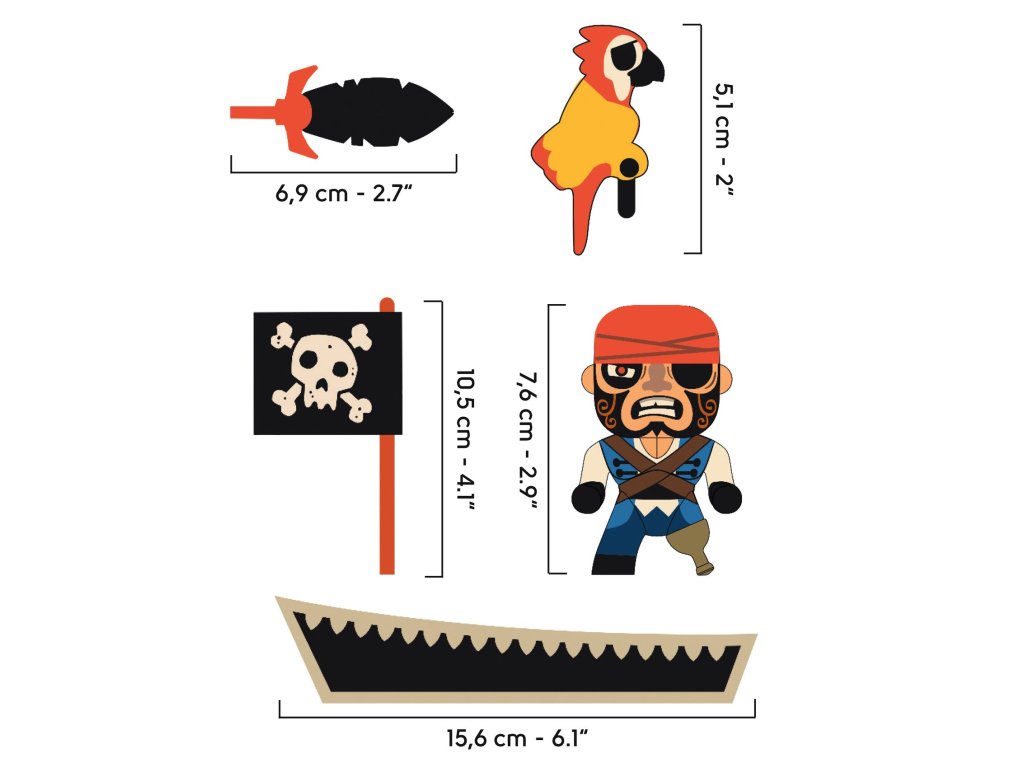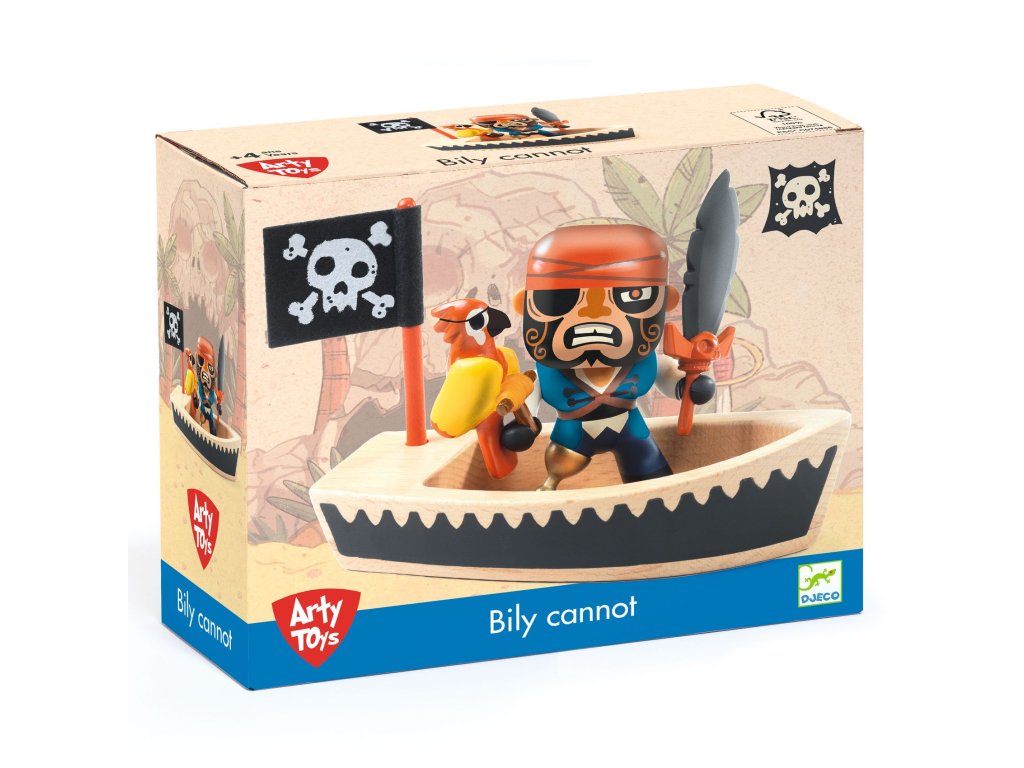 Arty Toys figrúka pirát Bily Cannot s člnom Pirát Bily Cannot vyráža na plavbu za pokladmiPirát Bily Cannot z kolekcie Arty Toys je typ postavy, ktorá v príbehu nikdy nie je potichu – rád spôsobí rozruch, nájde poklad a ešte si to užije.Figúrka má pohyblivú hlavu a ruky a v balení nájdeš aj drevený čln s vlajkou, meč a papagája.Vďaka doplnkom si deti ľahko postavia vlastnú „morskú scénu“ – prístav, útek pred strážami alebo prepad lode na otvorenom mori.Rýchly prehľad odporúčaný vek: od 4 rokov rozvíja: fantáziu, rozprávanie príbehov, jemnú motoriku, sociálnu hru v balení: figúrka + 2 doplnky + drevený čln + vlajkaPrečo si ho deti zamilujú pohyblivá hlava a ruky – jednoduché pózovanie do akcie meč sa dá vybrať z dlane – okamžite viac herných možností vlajka je súčasť lode – čln vyzerá ako skutočný pirátsky dopravný prostriedok drevený čln je z FSC® certifikovaného drevaAko sa s tým hrá Postav čln na „more“ (deka, koberec, modrý papier) a vytiahni vlajku. Vyber, či Bily ide na tichú výpravu alebo na rýchly prepad – meč a papagáj určia tón príbehu. Pridaj ďalšie figúrky Arty Toys a vytvor posádku, súperov aj vlastné pravidlá.Obsah balenia 1× figúrka piráta (pohyblivá hlava a ruky) 2× doplnok (meč, papagáj) 1× drevený čln 1× vlajkaTechnické parametre materiál: PVC (figúrka), FSC® drevo (čln), plast (doplnky) výška figúrky: cca 8 cm rozmery balenia: cca 12,5 × 15 × 6 cmDodatočné parametre