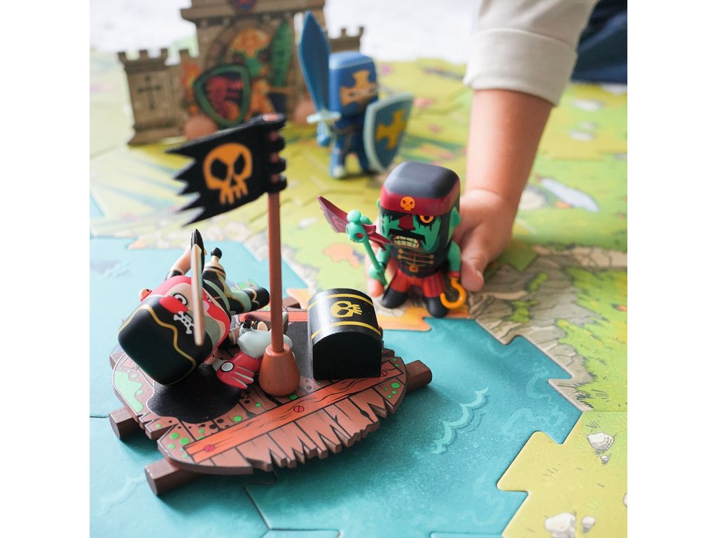 Arty Toys figúrka pirát Kyle Pirát, ktorý chce späť svoj trón: hák, sekera a plán na odvetuPirát Kyle z kolekcie Arty Toys nie je žiadny tichý pozorovateľ – prišiel o svoj „trón“ a teraz si ho chce získať späť.V jednej ruke má sekeru, v druhej hák a v hlave jediný cieľ: vyhrať ďalší súboj.Figúrka má pohyblivú hlavu a ruky, takže deti ľahko zahrajú prepad v prístave, výpravu po mapu aj obranu koristi.Rýchly prehľad odporúčaný vek: od 4 rokov rozvíja: fantáziu, rozprávanie príbehov, jemnú motoriku, sociálnu hru v balení: figúrka + 1 plastový doplnokPrečo si ho deti zamilujú pohyblivá hlava a ruky – ľahké pózovanie do akcie sekera ako doplnok – dá sa využiť v súbojoch aj pri strážení pokladu hák a výrazný dizajn okamžite naštartujú pirátsky príbeh postava sa skvele kombinuje s ďalšími figúrkami Arty ToysAko sa s tým hrá Vymysli scénu: loď, prístav, ostrov alebo tajná jaskyňa. Nastav Kylea do pózy a rozhodni, či je útočník, strážca alebo lovec mapy. Pridaj ďalšie postavy a vytvor vlastnú posádku aj rivalov.Obsah balenia 1× pirátska figúrka (pohyblivá hlava a ruky) 1× plastový doplnok (sekera)Technické parametre materiál: PVC (figúrka), plast (doplnok) výška figúrky: cca 7,5 cm rozmery balenia: cca 8 × 11 × 5,7 cm dizajn: Steve SimpsonDodatočné parametre