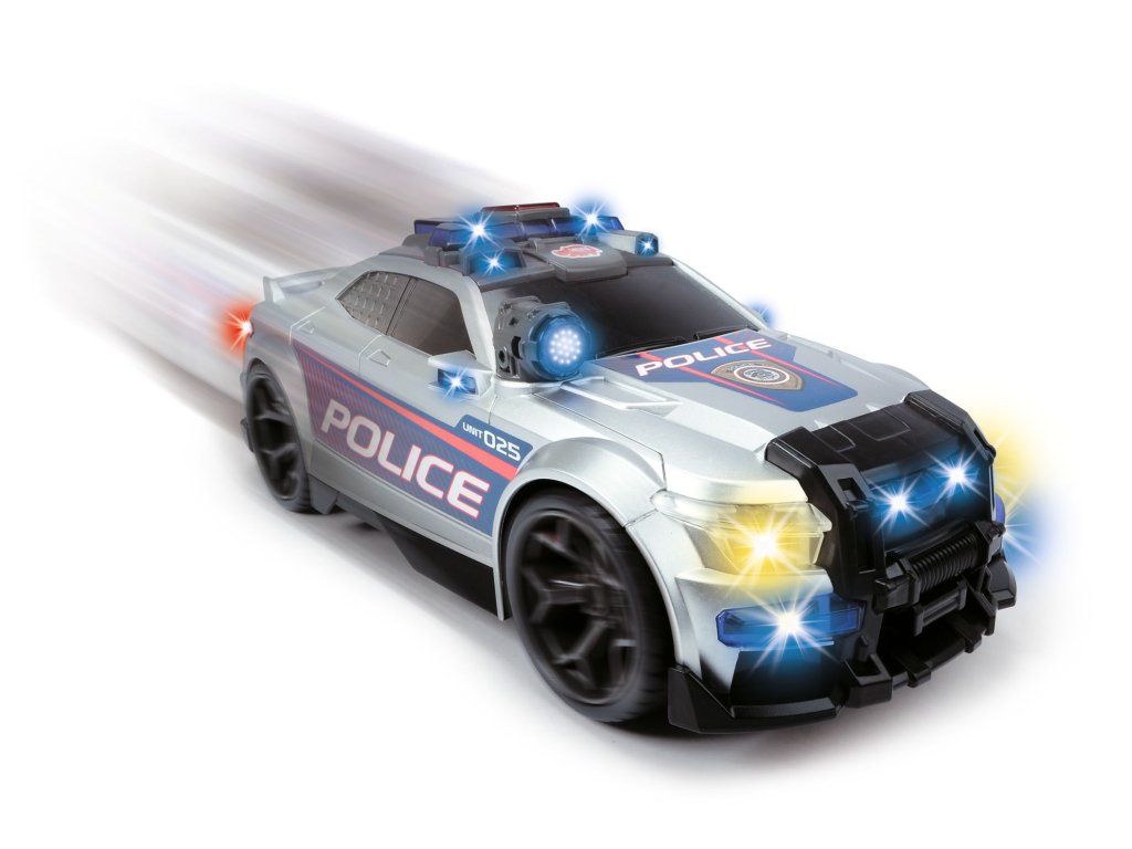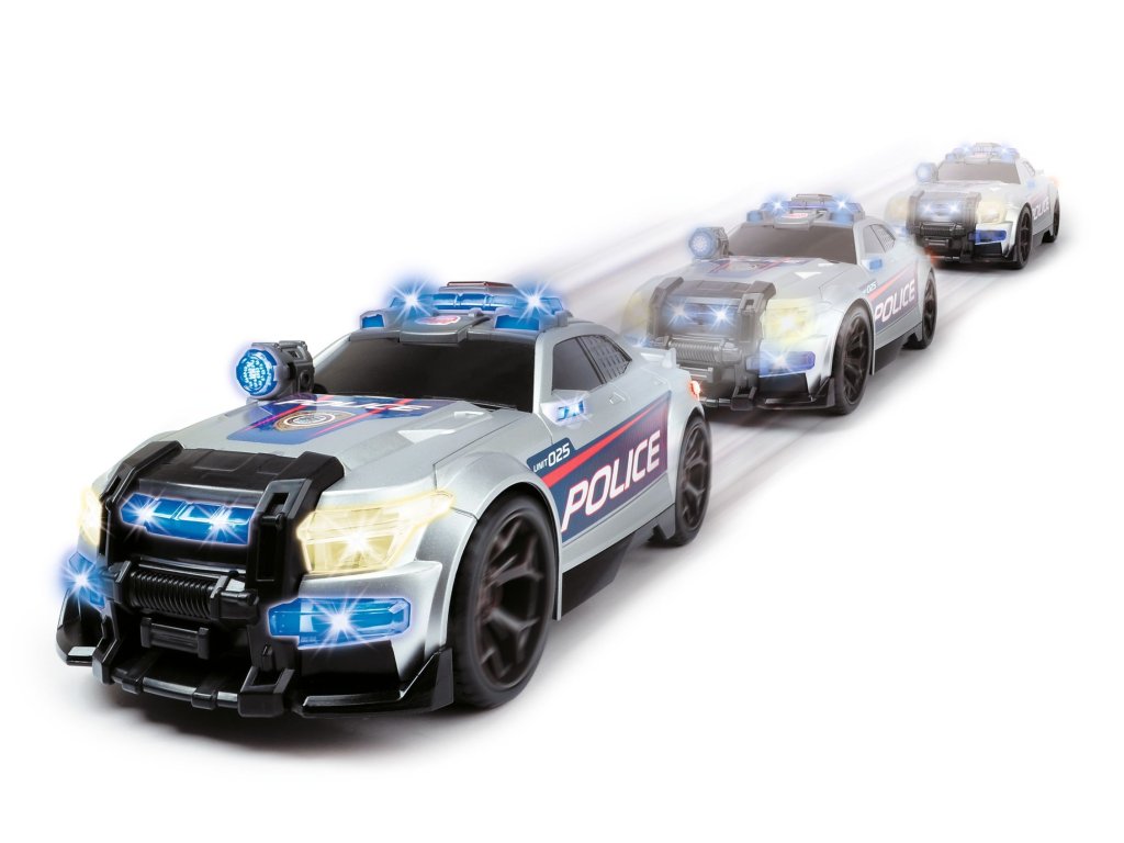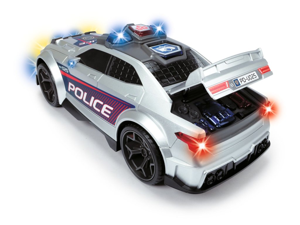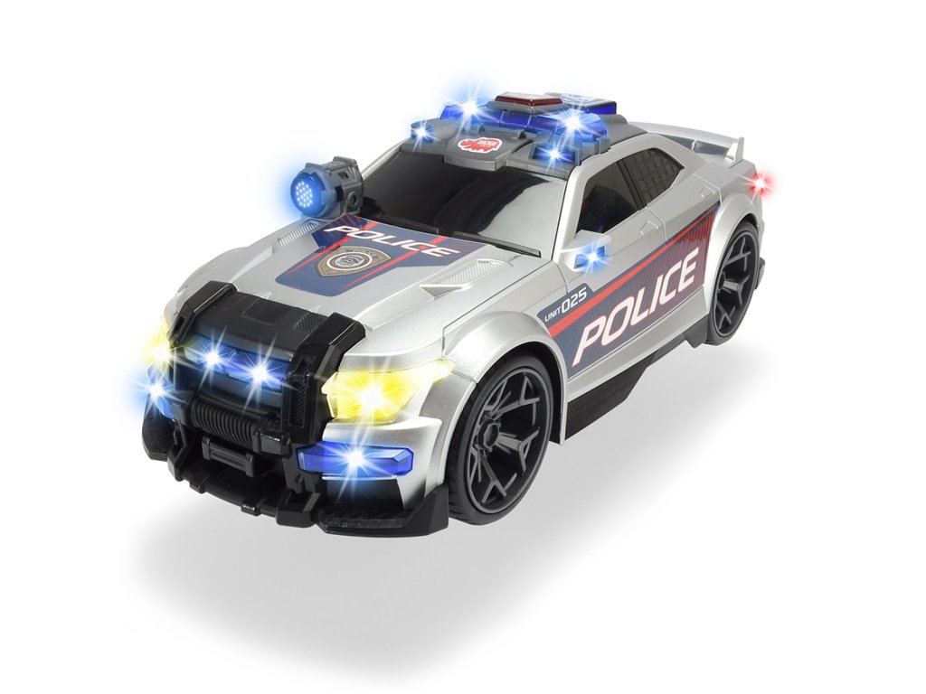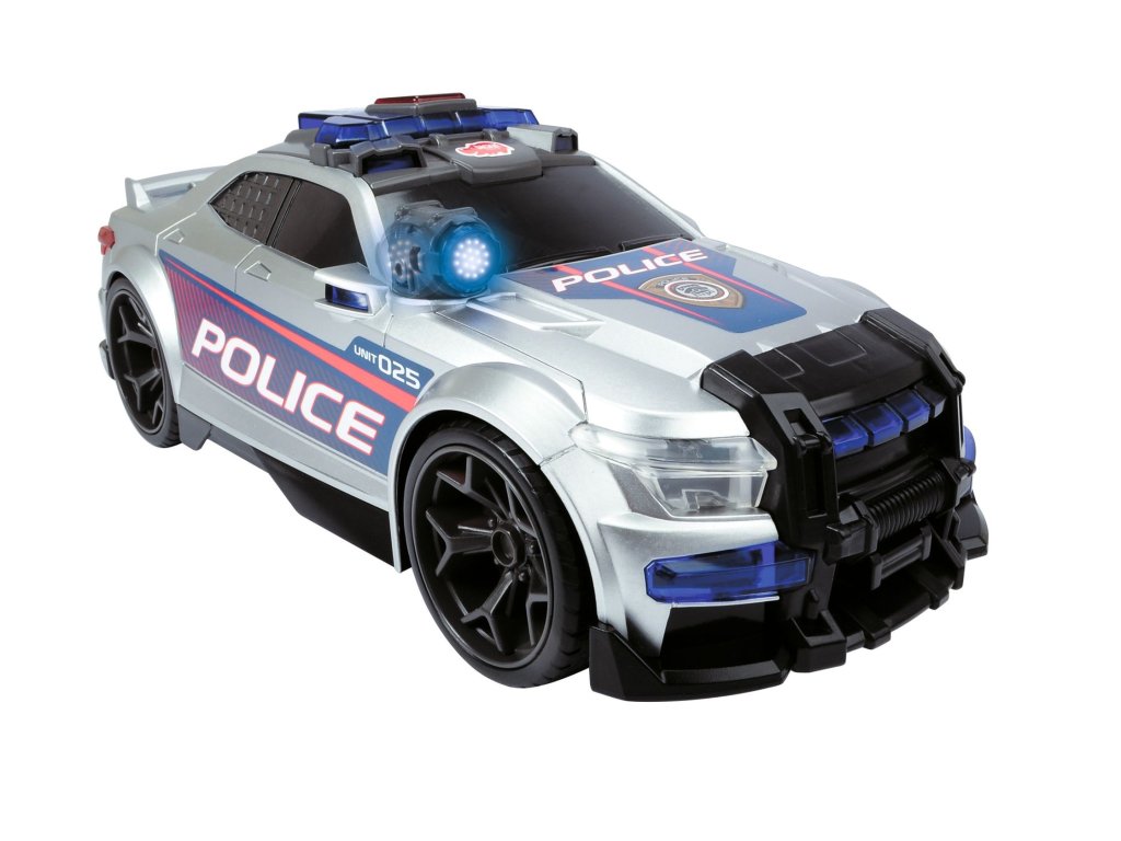 Policajné strieborné auto so svetelnými a zvukovými efektmi, motorizovaný pohyb vpred, otváracie a pohyblivé časti. Dĺžka 33 cm.Dodatočné parametre