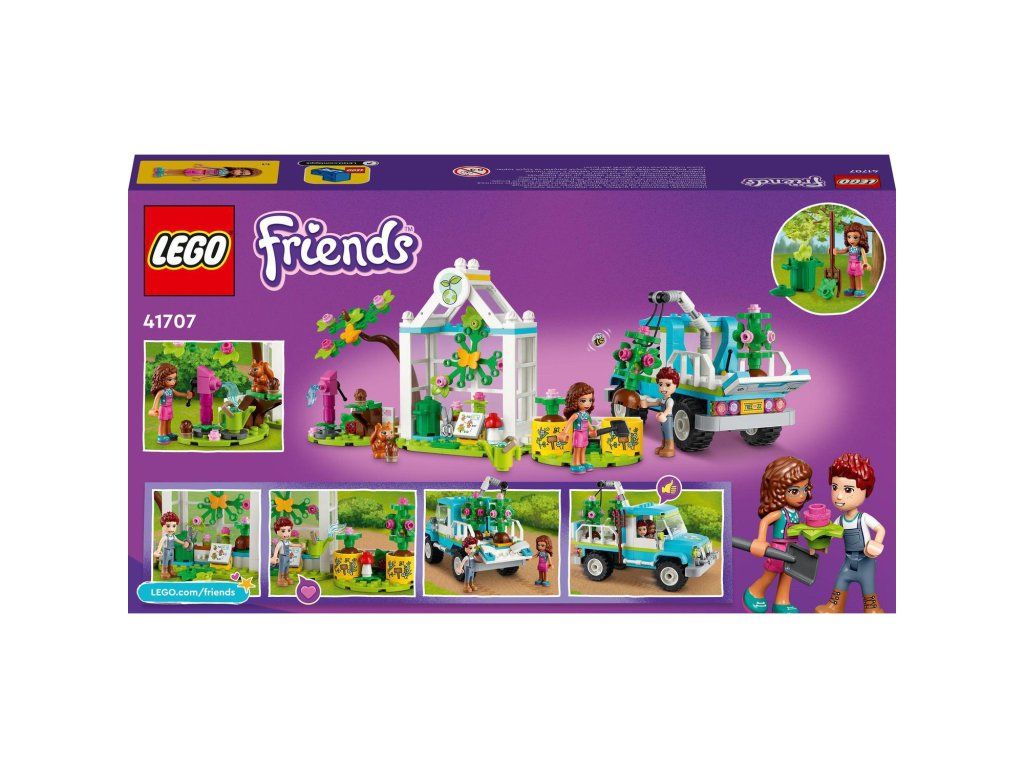 Rozvíjajte záujem detí o prírodu s autom na vysádzanie stromov (41707) zo série LEGO® Friends. Pomocou stavania a hry sa chlapci a dievčatá od 6 rokov môžu s týmto setom naučiť, ako rastú rastliny. Set obsahuje 2 minibábiky, lesnú škôlku, pojazdný pick-up, množstvo roztomilých záhradných doplnkov a figúrok divokých zvierat, ktoré pri práci robia spoločnosť postavičkám zo série LEGO Friends. Rozvíja schopnosť hrať sa tvorivo Tento narodeninový darček je plný prvkov, ktoré vzbudzujú nápaditú hru. Malí milovníci áut si obľúbia pick-up, ktorý postavičky prestavali na elektromobil. Je vybavený článkovým ramenom na zdvíhanie a spúšťanie stromov do pick-upu. Obdive minifigúrky sa zmestia do kabíny – deti len odstránia strechu a zasunú ich dovnútra. Rozvoj detských túžob Zaveďte deti do mestečka Heartlake. Či už sa zaujímajú o vedu, šport, umenie alebo životné prostredie, určite si nájdu set, ktorý podnieti ich predstavivosť a postavičku, ktorá je presne ako oni.Dodatočné parametre