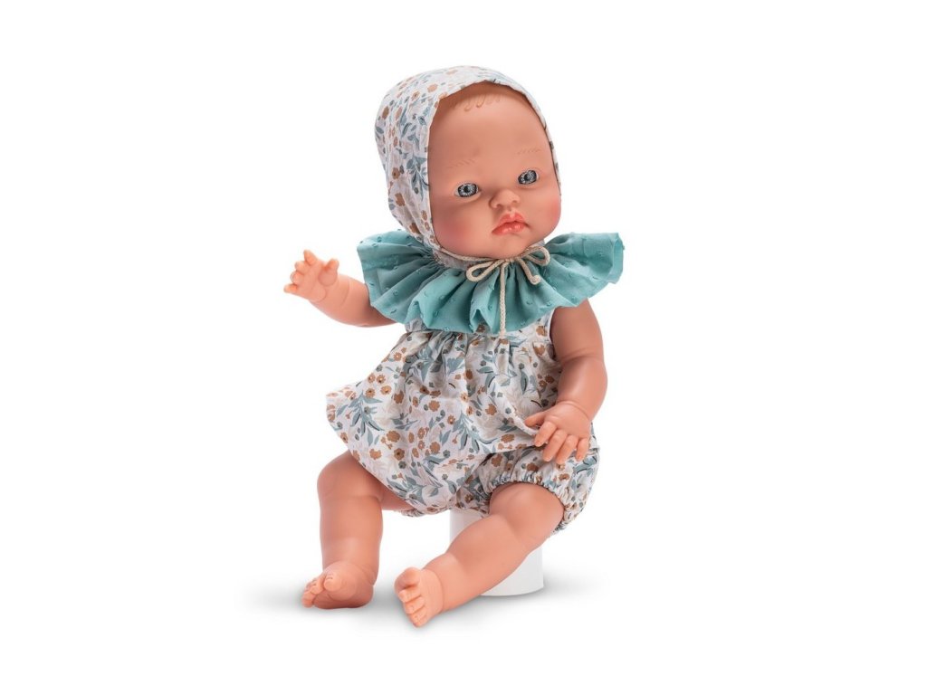 Chlapček menom Alex, vyrobený z hladkého a bezpečného vinylu, poteší originálne navrhnutým oblečením s módnym kvetinovým motívom. Jemný vzor dokonale ladí s volánovým zeleným golierom. Oblečenie dopĺňa viazaná bavlnená čiapočka. Všetky odevy sa dajú vyzliecť a bábiku možno prebaľovať alebo kúpať. Španielska bábika od známej značky ASI je vysoká 36 cm. Odporúča sa pre deti od 3 rokov.
