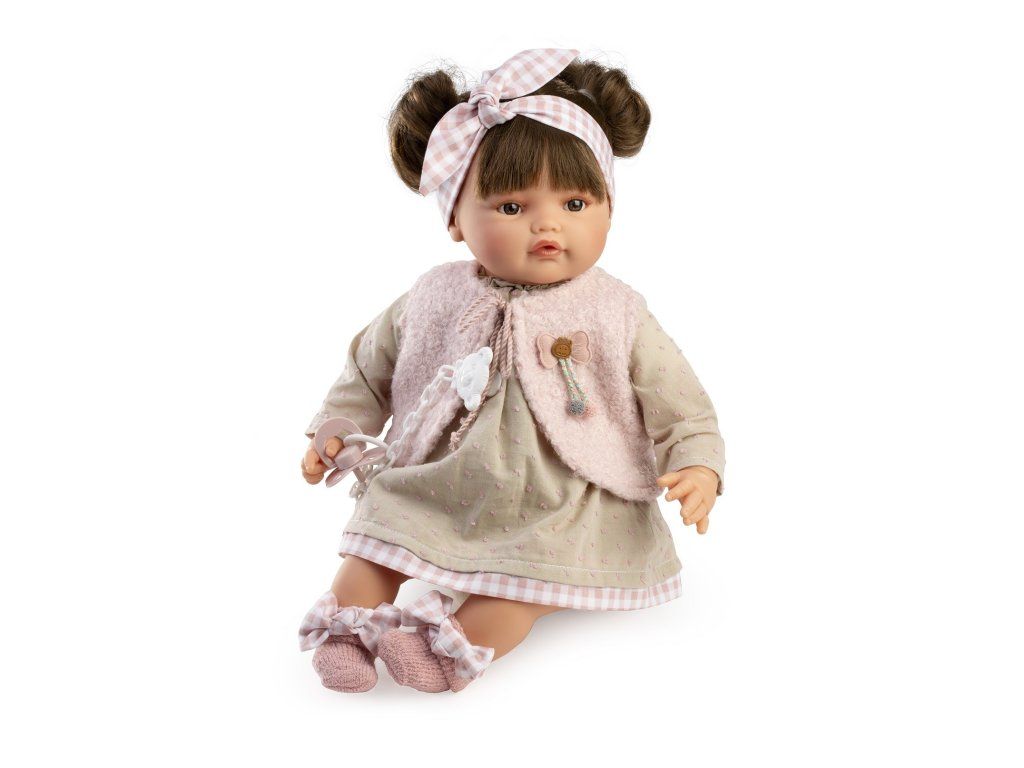 Dievčatko menom Beni určite obohatí každú zbierku jedinečných bábik. Poteší svojím realistickým vzhľadom, hustými, rozčesateľnými vlasmi, milou tváričkou a kvalitným, módnym oblečením a zaručí hodiny nezabudnuteľnej hry. Táto interaktívna španielska bábika od renomovanej značky Antonio Juan, vyrobená z hladkého, mäkkého vinylu, meria 42 cm, váži 1285 g a má mäkké bruško, vďaka čomu je ideálna na maznanie. Vďaka vstavanému zvukovému mechanizmu plače a hovorí „mama“ a „papa“, keď sa jej cumlík vyberie z úst. Upokojí sa približne po 30 sekundách.