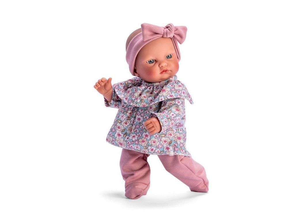 Španielska bábika ASI Gordi v elegantnej darčekovej krabičke Gordi je oblečená v ručne šitom oblečku prepracovanom do každého detailu. Bavlnenú, farebnú kvetinovú blúzku zdobí efektný volánový golier. Nohavičky sú v páse ukončené gumou. Elastická jemná čelenka v púdrovej ružovej to celé úžasne dopĺňa. Všetko oblečenie sa dá ľahko vyzliecť. Originálna, dizajnová krabička s vrchnákom môže slúžiť ako darčekové balenie a následne ako postieľka pre bábätko.