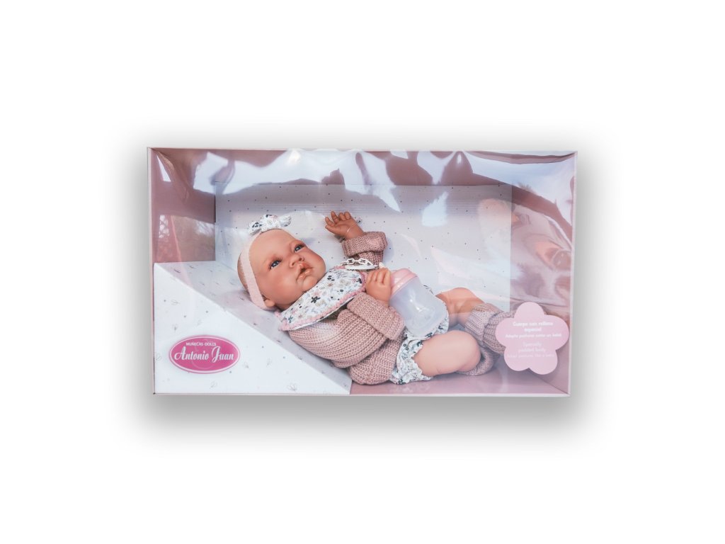 Španielska bábika Recien Nacido Lua od renomovanej značky Antonio Juan je balená v krásnej ružovo-bielej, ekologickej firemnej krabici s viečkom. Bábätko má všetky bezpečnostné certifikáty CE a je vyrobené kompletne v Španielsku v súlade s princípmi nulového odpadu.