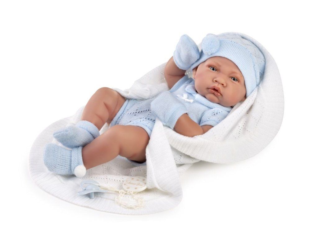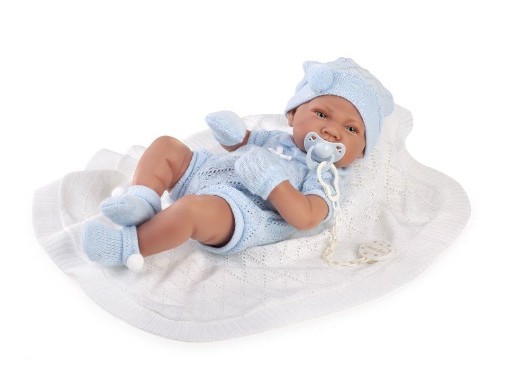 Španielska bábika Nino Boy s dekou. Chlapček Nino španielskej značky Antonio Juan dopĺňa kolekciu bábik. Bábika je vysoká 42 cm a bola starostlivo vymodelovaná tak, aby pripomínala skutočného chlapca. Vďaka materiálu, z ktorého bol Nino vyrobený - vinyl, je možné dieťatko vziať aj do vody.