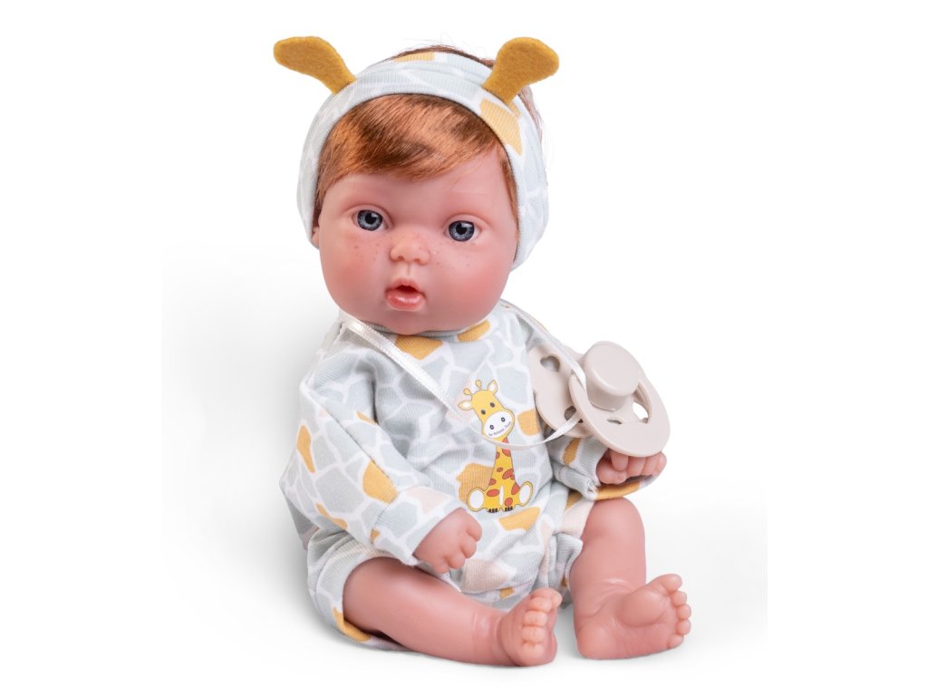 Každé dieťa má jedinečnú príležitosť vytvoriť si vlastnú špeciálnu kolekciu malých bábik, oblečených do krásnych ručne šitých kostýmov . Táto 21 cm bábika oblečená do mäkkého bavlneného kostýmu žirafy prenesie vaše dieťatko do sveta fantázie a starostlivej hry. Kombinézu so zvieracím vzorom, ktorú zdobí rozkošný obrázok, možno ľahko vyzliecť a bábiku prezliecť alebo okúpať. Kostým dopĺňa roztomilá čelenka s uškami.