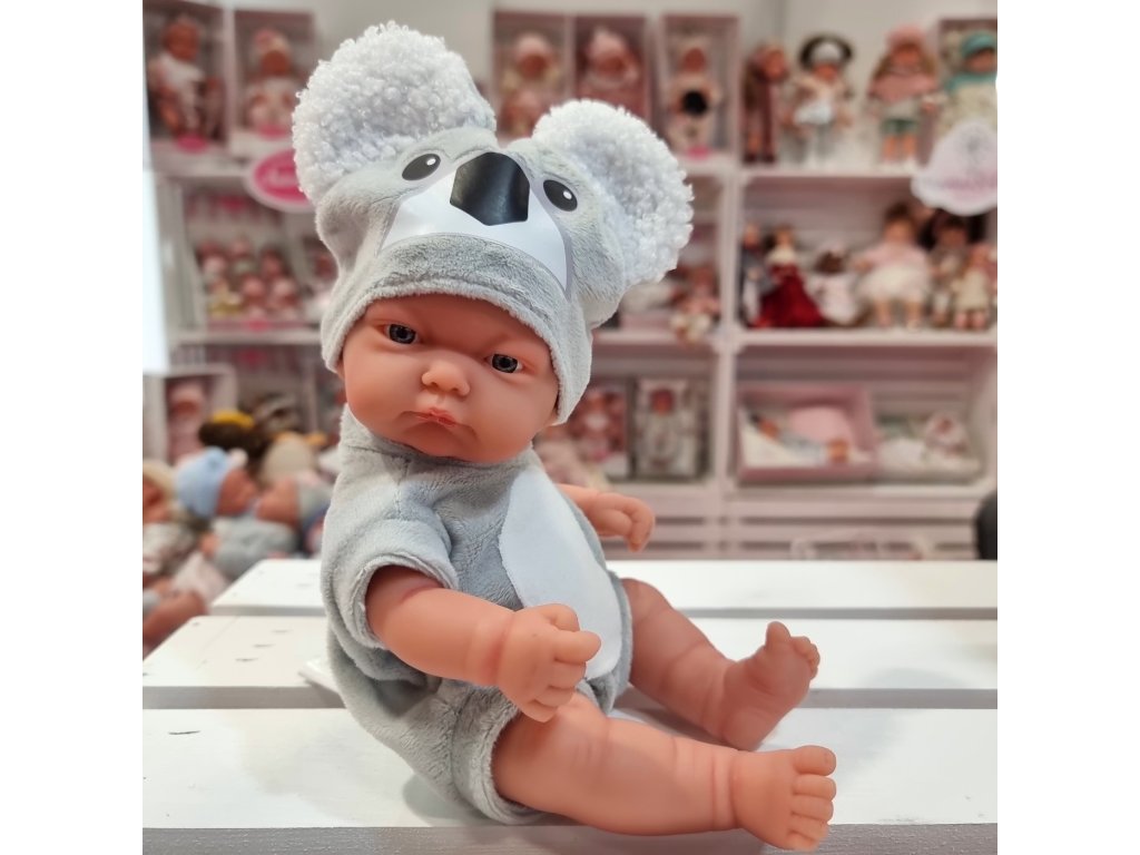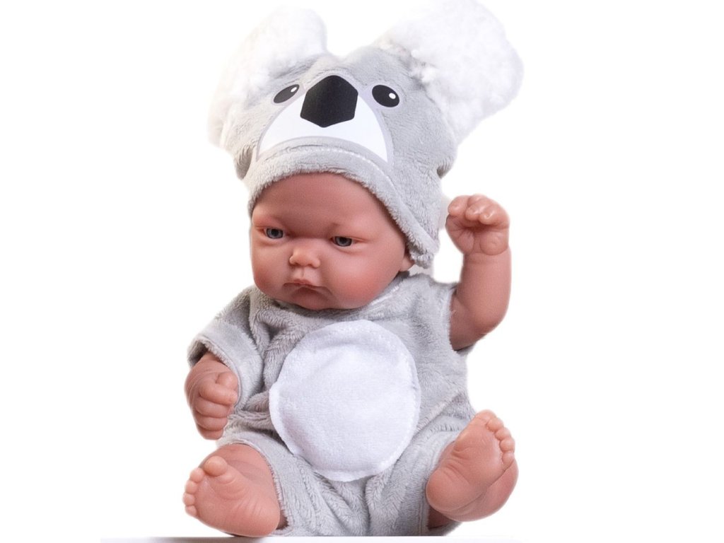 Španielska bábika Pitu KOALA 26 cm Antonio Juan 84098. Očarujúca vinylová španielska bábika od renomovanej značky Antonio Juan je 26-centimetrové bábätko s rozkošnou tváričkou. Starostlivo vyrobená s dôrazom na najmenšie detaily je ideálnou voľbou ako darček. Pútavé, jedinečné, ručne šité plyšové oblečenie – body na suchý zips s klobúkom v štýle medvedíka koaly. Hračka je určená pre deti od 2 rokov.