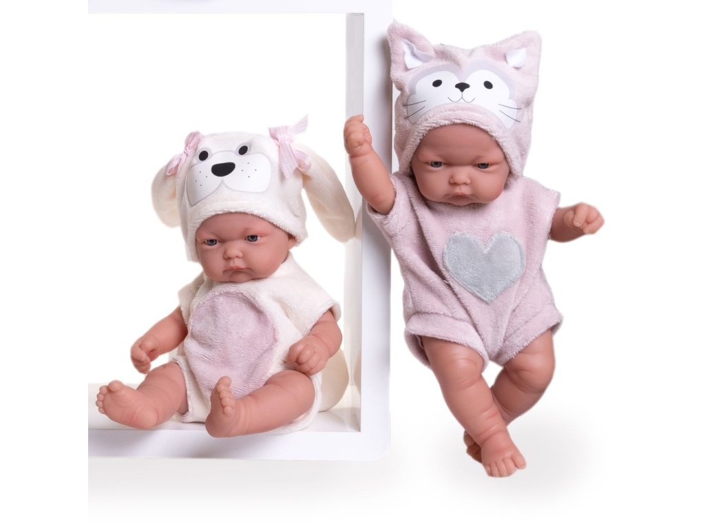 Španielska bábika Pitu Psík 26 cm Antonio Juan 84098. Pôvabná vinylová španielska bábika od renomovanej značky Antonio Juan je 26-centimetrové bábätko s roztomilou tváričkou. Starostlivo vyrobená s dôrazom na najmenšie detaily je ideálnou voľbou ako darček. Pútavé, jedinečné, ručne šité plyšové oblečenie – body na suchý zips s čiapkou v štýle psa. Hračka je určená pre deti od 2 rokov.