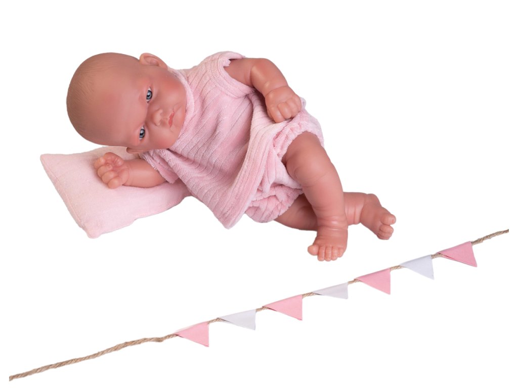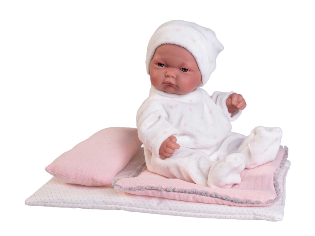 Španielske bábätko má veľké modré oči a nemá na hlave žiadne vlásky, iba rezbárske práce napodobňujúce jemné vlásky, ktoré vyzerajú ako skutočné novorodenca. Bábätko je malé, takže sa hodí na všetky druhy výletov, rodinných osláv či dovoleniek. Odteraz vás toto milé bábätko bude sprevádzať kamkoľvek pôjdete. Sortiment bábik Antonio obsahuje toľko rôznych Pitus, koľko je skutočných detí, takže nájdete ten správny model pre vás v krásnych štýloch s očarujúcimi doplnkami.