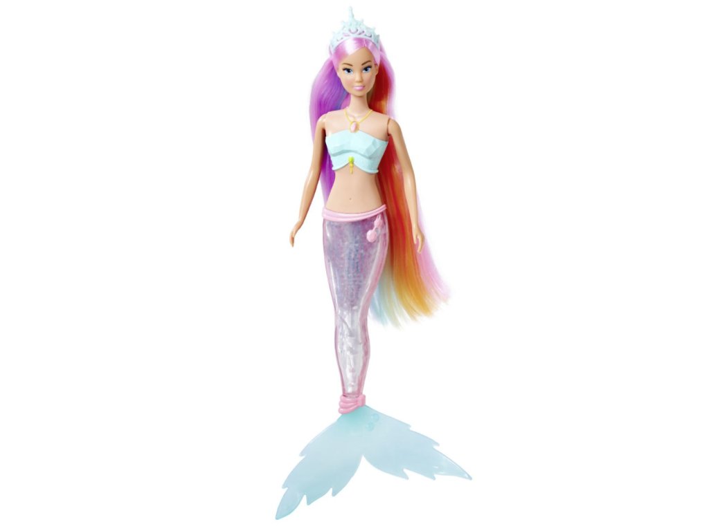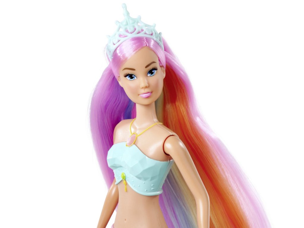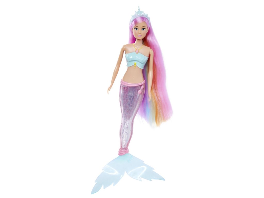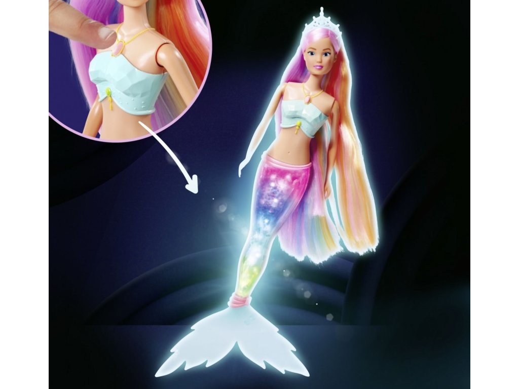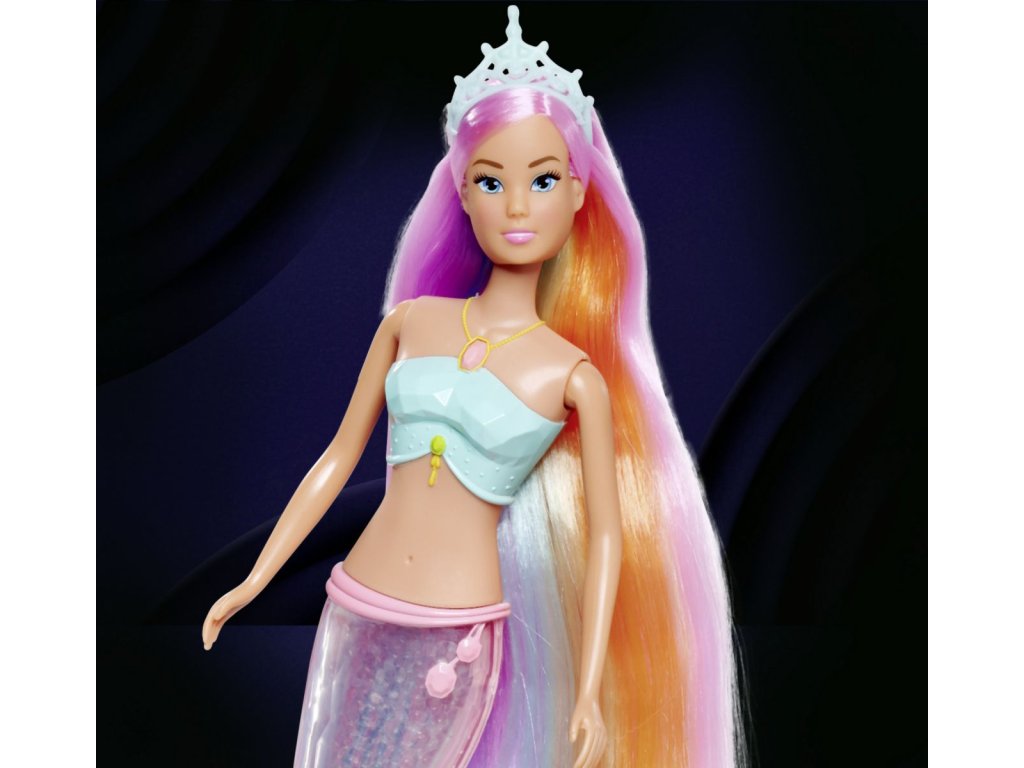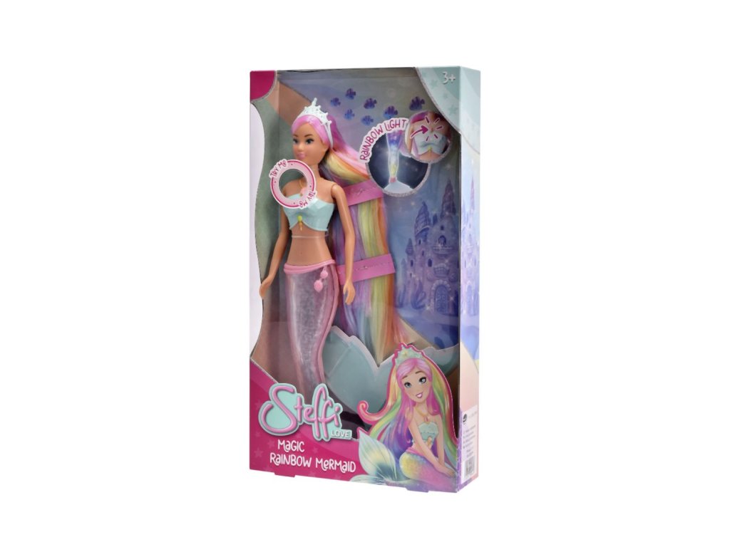Bábika Steffi ako morská víla s kúzelnou dúhovou svetelnou plutvou a extra dlhými vlasmi, vodeodolná. Výška bábiky 39 cm.Dodatočné parametre