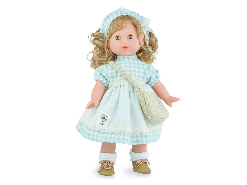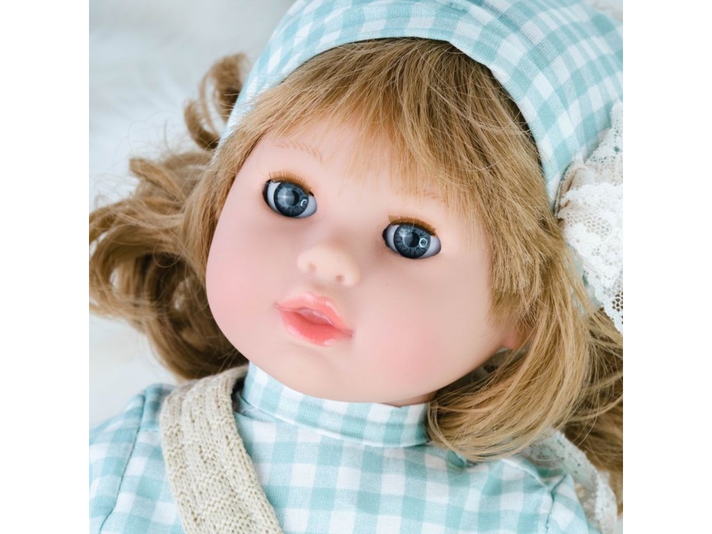 Španielske dievča v károvanom štýle určenom na česanie. Bábika s názvom Tina Vichy od značky Marina & Pau je dokonale vytvorené dievčatko väčších rozmerov. Tento kúsok určite zaujme všetkých zberateľov a milovníkov hry s bábikami. Toto milé dievčatko s výškou 42 cm má husté blond vlasy s ofinou. Uviazaná károvaná šatka, ktorú nosí na hlave, dodáva Tine ďalší šarm. Vaše dieťatko si môže pokrývku hlavy odňať a česať a upravovať jej vlasy rôznymi spôsobmi.