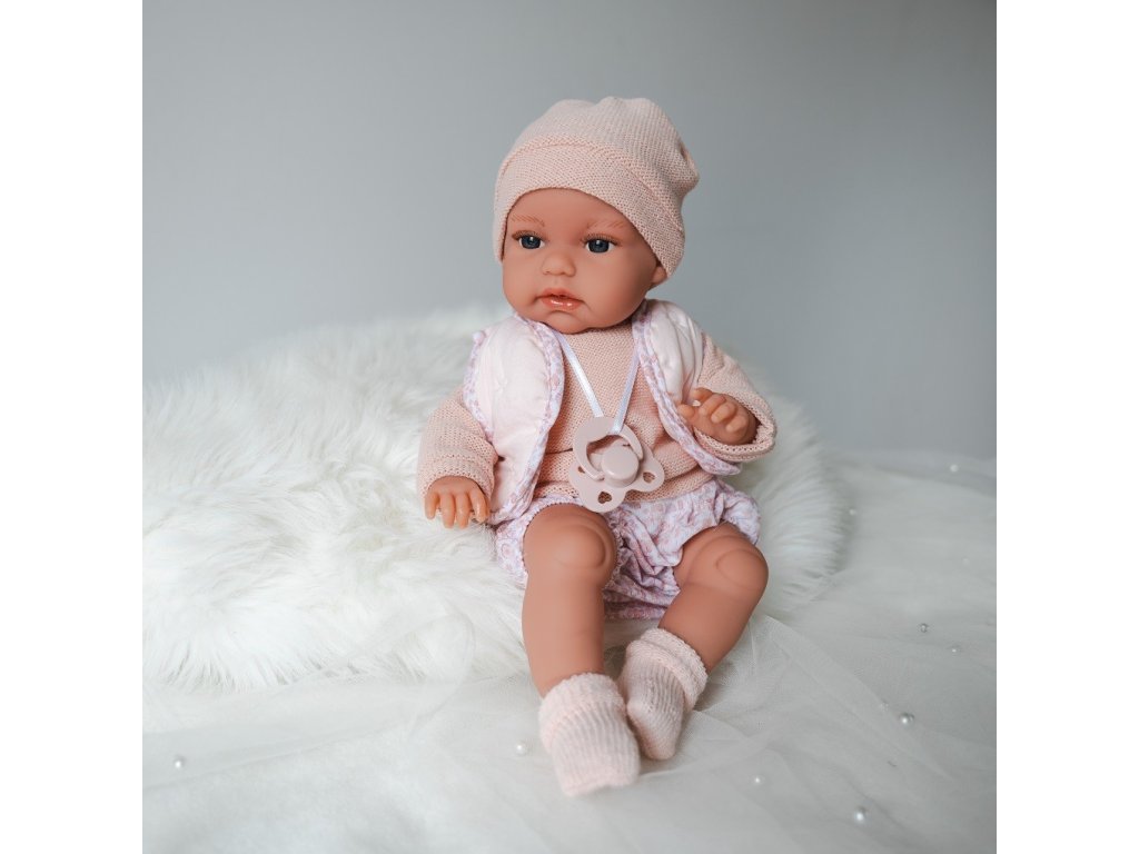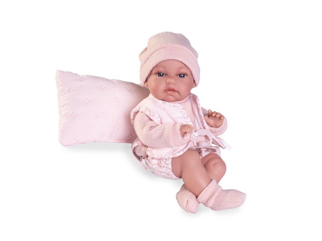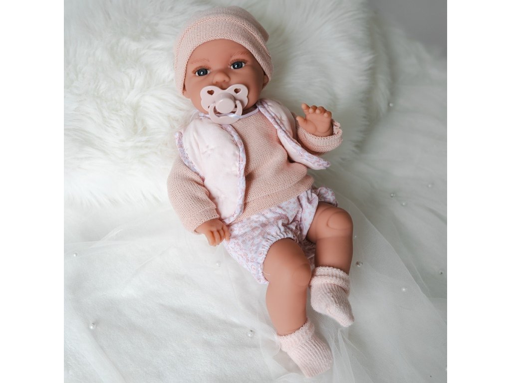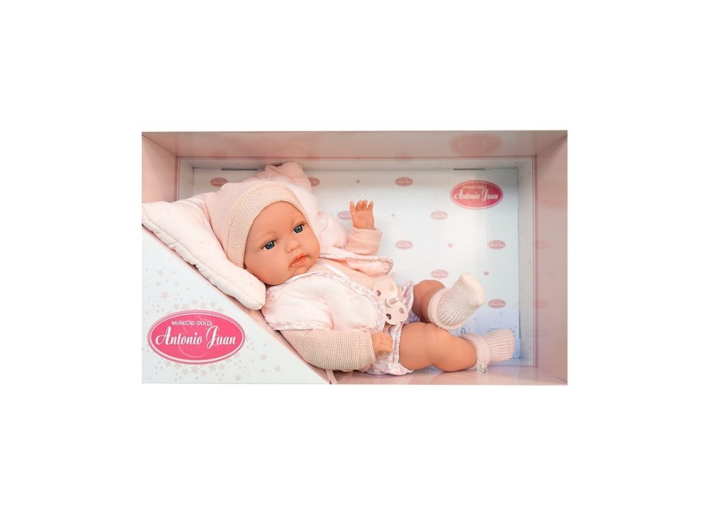 Realisticky vyzerajúce bábätko má tvarované vlasy a jemne namaľované obočie, nechty, odtlačky prstov a záhyby. Bábätko Toneta od značky Antonio Juan je oblečené v teplom svetri, čiapke a ponožkách. Súprava obsahuje aj tielko a vzorované šortky. Všetky kusy oblečenia sa dajú ľahko vyzliecť a dieťatko sa dá prezliecť do inej sady oblečenia. Sada obsahuje aj vankúš a cumlík na saténovej stuhe.