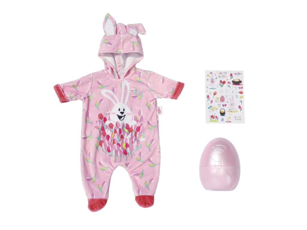 Teraz nastražia uši všetci, ktorí chystajú veľkonočné skrýše! V ružovom veľkonočnom vajíčku BABY born je ukrytý roztomilý overal. Je ozdobený potlačou zajačika Benna a jarných tulipánov. Na kapucni sú prišité veselé zajačie ušká. Ružový overal má červená chodidlá, ktoré určite doskočia ďaleko. Súčasťou sú aj samolepky pre veľkonočné dekorácie. • Kvalitné oblečenie pre originálnu bábiku BABY born. • Pre radosť z nápaditej, rozmanitej a dlhotrvajúcej hry. • Veľmi jednoduché prezliekanie. BABY born Veľkonočné vajíčko s oblečením, súčasťou sú samolepky.Dodatočné parametre
