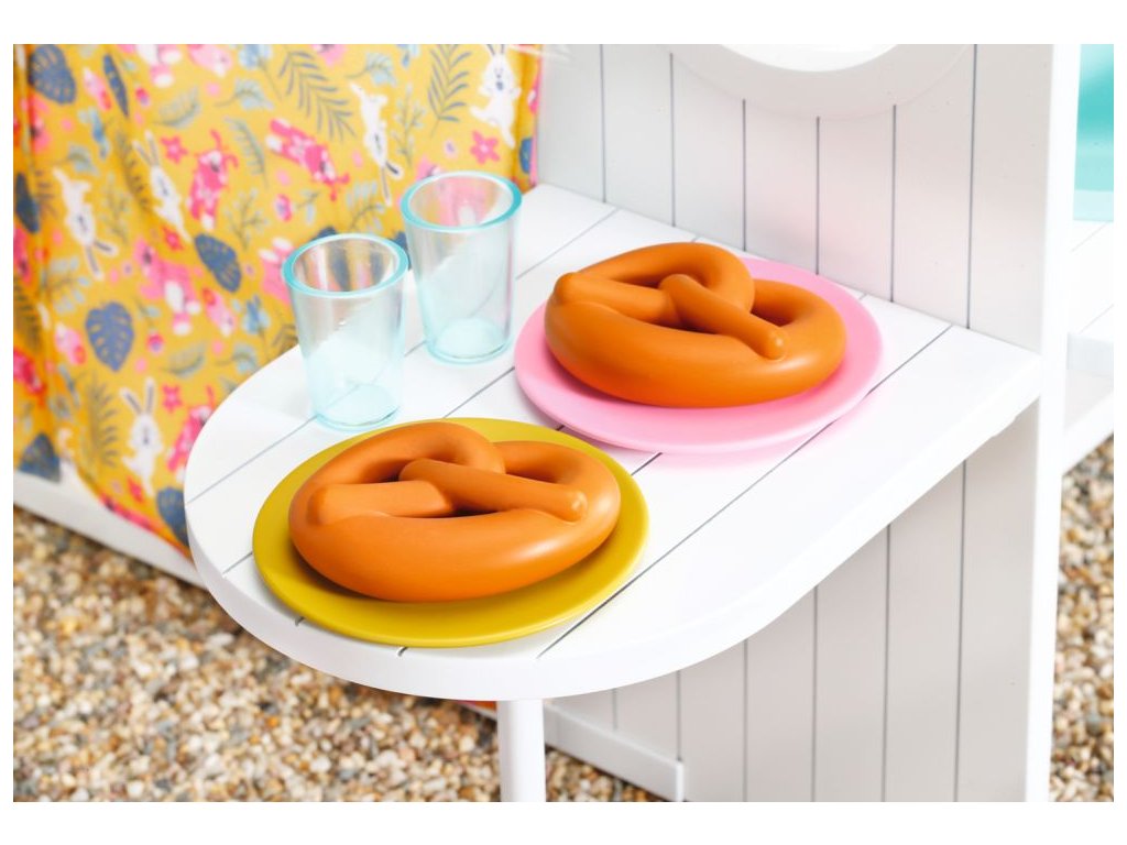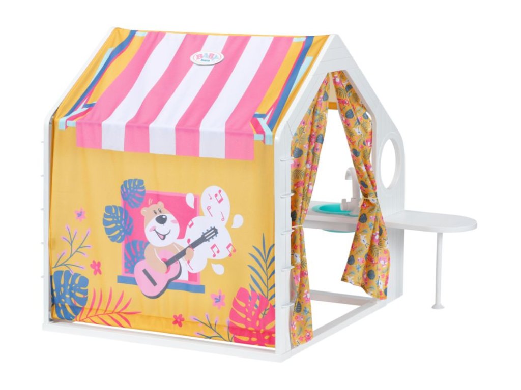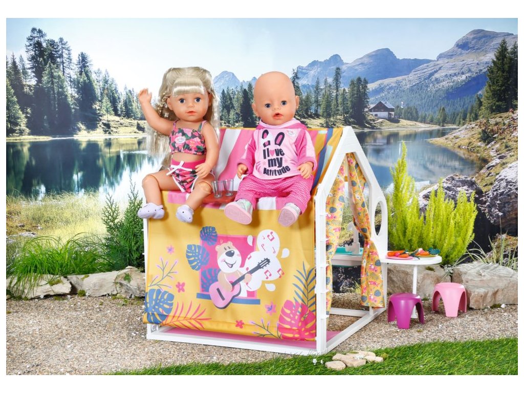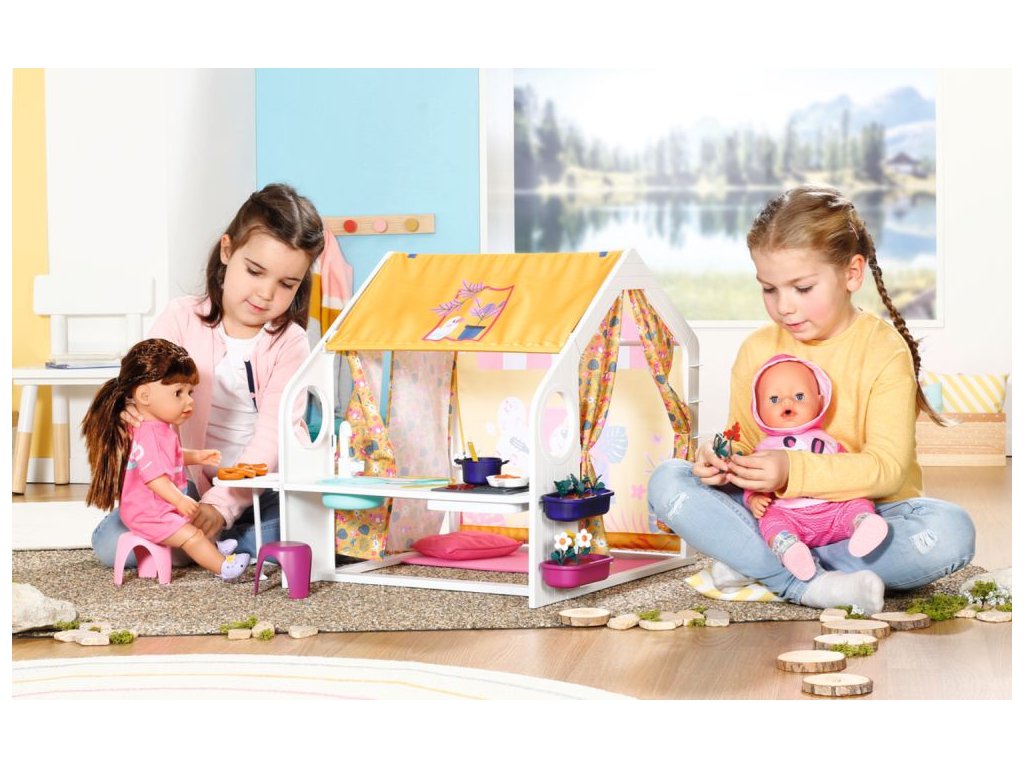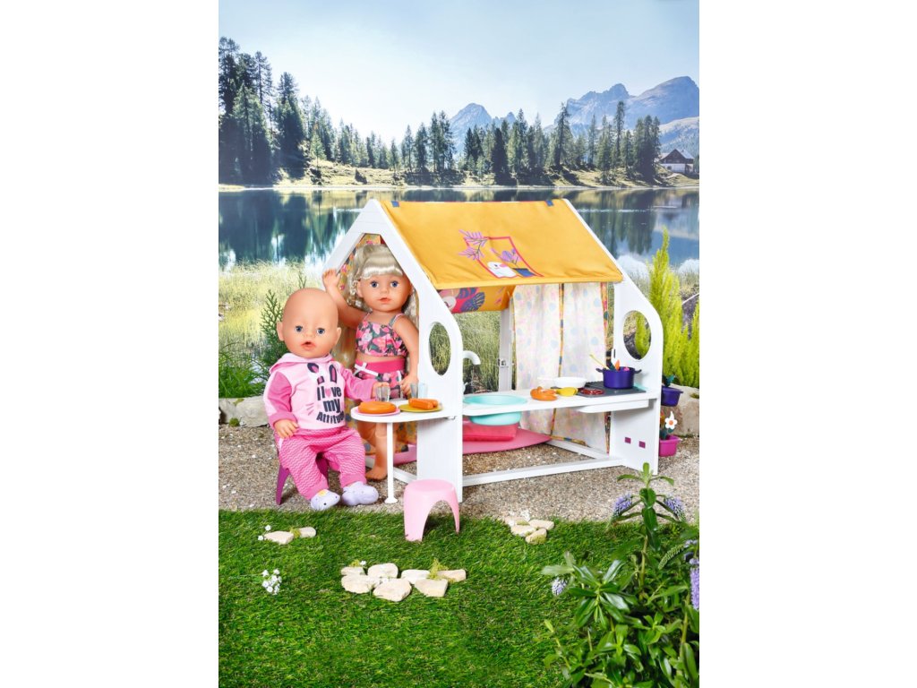 Už ste niekedy počuli o glampingu? Tak sa hovorí kempovaniu s luxusným vybavením. A presne to cez víkendy rada robí BABY born so svojimi kamarátmi. Keď k víkendovému domčeku dorazí, tak najskôr otvoria žlté bočné steny, aby bolo na všetko dosť miesta. Potom sa postarajú o kvety v kvetináčoch a zožnú zeleninu na večeru. Zatiaľ čo sa na sporáku pripravuje jedlo, BABY born prestiera stôl. Podáva sa šalát z mrkvy a reďkoviek a nechýbajú ani párky a praclíky. Po jedle je samozrejme potrebné umyť riad. Jejda, to už je ale neskoro. Skôr, než pôjdeme do postieľky, tak si ešte užijeme pozorovanie západu slnka. Na noc si BABY born ustlala v spacom kútiku na ružovom vankúšiku a matraci. • Kvalitné príslušenstvo pre originálnu bábiku BABY born. • Pre radosť z nápaditej, rozmanitej a dlhotrvajúcej hry. • Vhodné pre bábiku veľkosti 36 cm a 43 cm. BABY born Víkendový domček s bohatým príslušenstvom a svetelnými a zvukovými efektmi.Dodatočné parametre