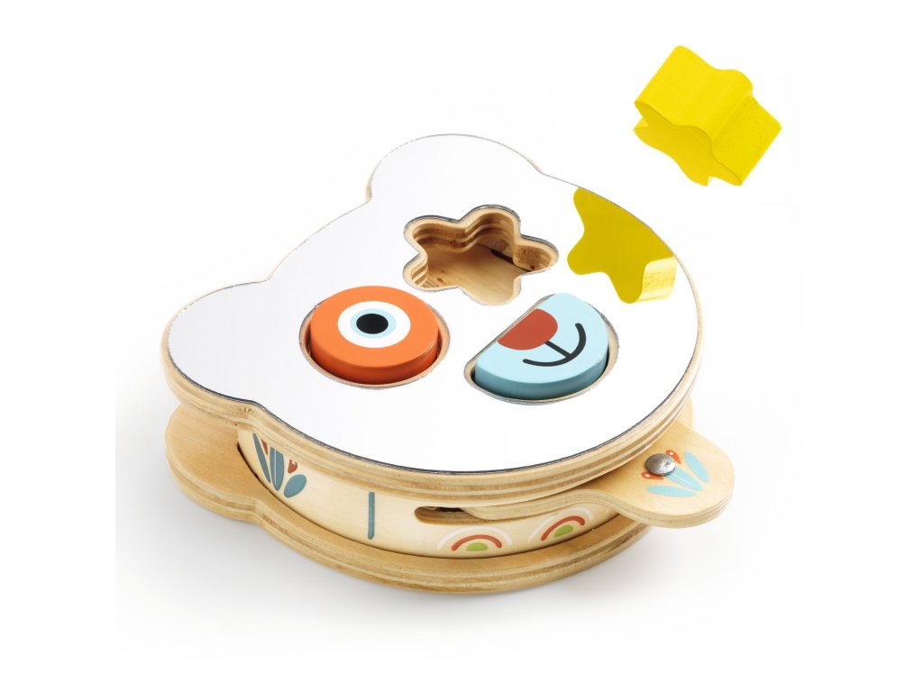 BabyBoomi: 3-dielna drevená vkladačkaPrvá vkladačka s reflexným povrchom a výsuvnou doskou pre bábätkáBabyBoomi je jemná a premyslená rozvojová drevená vkladačka, navrhnutá pre najmenšie deti. Hračka pozostáva z 3 veľkých dielikov v tvare medveďa, ktoré dieťa vkladá do drevenej dosky. Vďaka výsuvnej spodnej doske môže dieťa dieliky jednoducho vybrať späť a aktivitu opakovať znova a znova. Súčasťou dizajnu je aj reflexný povrch (bezpečné zrkadielko), v ktorom dieťa pozoruje svoj odraz. To prirodzene podporuje zvedavosť, zrakové vnímanie a sebauvedomenie už v ranom veku.Čo môže dieťa s hračkou robiť:Vkladať 3 veľké drevené dieliky do správnych otvorovVysúvať spodnú dosku a znovu dieliky vyberaťPozorovať svoj odraz v reflexnej plocheChytať a manipulovať s dielikmi prispôsobenými malým rúčkamTieto aktivity podporujú jemnú motoriku, koordináciu ruka–oko a pochopenie vzťahu príčina – následok.Čo BabyBoomi rozvíja:Úchop a prácu prstovKoordináciu zraku a pohybuZrakové vnímanie a pozornosťLogické myslenie (tvar – otvor)Samostatné objavovanieObsah balenia:Tvarovaná drevená schránka so zrkadlovým povrchom3 geometrické ilustrované drevené dielyVyťahovacia drevená doštičkaPrečo si vybrať BabyBoomi od Djeco:Len 3 dieliky – ideálne ako prvá vkladačkaVýsuvná doska pre jednoduché opakovanie hryReflexný povrch pre zmyslovú stimuláciuPrírodné drevo a bezpečné spracovanieVhodné pre deti od 18 mesiacovDodatočné parametre