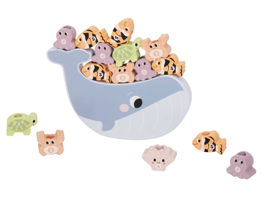 Značka eliNeli prináša do detského sveta moderný dizajn v spojení s moderným európskym štýlom inšpirovaným nemeckou kvalitou a dizajnom. Prioritou pri výrobe sú prírodné materiály, prírodné drevo, čím podporuje udržateľnosť a bezpečnosť hračiek. Nové výrobky prechádzajú prísnymi bezpečnostnými testami TÜV Rheinland, čo zaisťuje bezpečnú hru deťom a pokoj rodičom. S eliNeli sa deti učia, tvoria a rastú v bezpečnom a podnetnom prostredí, ktoré nielen spĺňa, ale prekonáva ich očakávania. Balančná hra s morskými živočíchmi je len jednou zo sady detských hier 4v1. Spoločenské hry s morskou tematikou, s veľrybou, rybami, chobotnicami, krabmi, korytnačkami a mušľou v jednom balení, okúzlia dievčatká aj chlapcov, prinesú im množstvo zábavy a prirodzeným spôsobom ovplyvnia rozvoj detských schopností. Balančná hra spočíva v opatrnom pokladaní morských živočíchov na veľkú veľrybu tak, aby nepopadali. Nasadzovacia hra spočíva v nasadzovaní morských živočíchov na drevené kolíky, tie šikovnejšie deti ich môžu skladať podľa farieb. Navliekacia hra spočíva v navliekaní morských živočíchov na silný povrázok. Chytanie rybičiek, rybolov, spočíva v lovení rybičiek a ďalších zvieratiek z mora pomocou udice s magnetom. Rybky, chobotnice, kraby, korytnačky a mušle, napriek tomu, že sú malé, sú hlavnými aktérmi každej zo 4 obľúbených detských hier. Pri všetkých týchto hrách deti zdokonaľujú jemnú motoriku, koordináciu očí a rúk, priestorovú predstavivosť, logické myslenie, kreativitu, učia sa sústrediť sa a trpezlivosti. Prečo kúpiť túto balančnú hru: Prírodný materiál - eliNeli kladie dôraz na výrobu z dreva a prírodných materiálov, čím zaisťuje ekologickú šetrnosť a bezpečnosť hračiek. Súbor hier 4v1 - v jednom balení nájdu deti hneď 4 obľúbené hry. Obľúbené detské hry - súčasťou balenia je balančná hra s morskými živočíchmi, chytanie rybičiek (rybolov), drevená nasadzovacia hra, navliekanie korálok v podobe morských živočíchov. Krásne farby aj motív - morská tematika a krásne farby rozžiaria detské očká. Rozvíja a zdokonaľuje - hra rozvíja jemnú motoriku, koordináciu očí a rúk, priestorovú predstavivosť, logické myslenie, kreativitu, učí deti trpezlivosti a sústrediť sa. Vysoké bezpečnostné štandardy - hračka prešla prísnymi nemeckými bezpečnostnými testami TÜV Rheinland, čo zaručuje maximálnu bezpečnosť pre vaše deti. Hračka bezpečná pre deti - vyrobená z prírodných materiálov, natretá bezpečnými, netoxickými, vodou riediteľnými farbami. Technické parametre: Rozmer balenia: 24,5 x 22 x 4,5 cm. Hmotnosť: cca 550 g. Materiál: jalovcové drevo, MDF, magnet. Certifikáty a normy: CE, 2009/48/ES, TÜV Rheinland, EN 71-1, 2 a 3. Odporúčaný vek: od 3 rokov, 36m+. Rodičovský ťahák na chytré hranie a inšpiráciu z montessori pedagogiky nájdete na webe eliPlay: https://play.elineli.eu/sk/. Viac o produktoch eliNeli nájdete na: https://www.elineli.eu/sk/. Často kladené otázky: Je hračka bezpečná pre deti? Balančná hra Rybky 4v1 eliNeli je testovaná, vhodná a bezpečná pre deti a vydrží vašim deťom dlho. Hračka prešla prísnymi bezpečnostnými testami TÜV Rheinland. Spĺňa požiadavky smernice o bezpečnosti hračiek 2009/48/ES a normy o nezávadnosti a bezpečnosti hračiek EN 71-1, 2, 3, kedy sa testujú mechanické a fyzikálne vlastnosti, horľavosť aj migrácia určitých látok. Súbor hier otestoval a Certifikát o zhode (Osvedčenie o zhode - CE) udelil technický a skúšobný ústav. U Balančnej hry 4v1 pre deti eliNeli máte istotu, že je hračka pre vaše deti vhodná a bezpečná, je testovaná, na náter sú použité netoxické, zdravotne nezávadné laky a farby.Dodatočné parametre