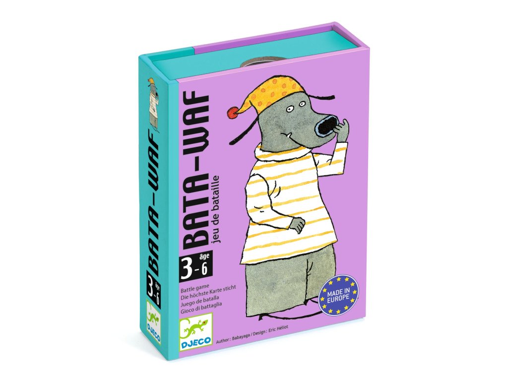 Batawaf: kartová bojová hraRýchla, zábavná a taktická hra so psími kartamiBatawaf je svižná a dynamická kartová bojová hra od Djeco. V každom kole obaja hráči vyložia jednu kartu a hráč s vyššou hodnotou karty získa všetky vyložené karty. Hra pokračuje, kým jeden hráč nezíska všetky karty a nestane sa víťazom.Prečo si vybrať túto hru od Djeco:Vhodná pre deti od 6 rokovPre 2 - 4 hráčovIdeálna pre krátke, rýchle partie (10–15 min)Jednoduché pravidlá, ktoré sa naučia aj mladšie detiZábavná bojová mechanika pre dvoch aj viacerých hráčovNádherné ilustrácie psíkov charakteristické pre DjecoKompaktné balenie, vhodné na doma aj na cestyČo hra rozvíja u detí:Rýchle rozhodovanie a reakcieLogické a taktické myslenieSchopnosť predvídať súperove ťahySociálne zručnosti pri hre v skupineSústredenie a pozornosťObsah balenia:Balíček 36 kartičiek s pestrými ilustráciami psíkovPravidlá hryTento dynamický a zábavný titul je skvelou voľbou pre deti, ktoré si chcú vyskúšať rýchle a takticke kartové hry!Dodatočné parametre