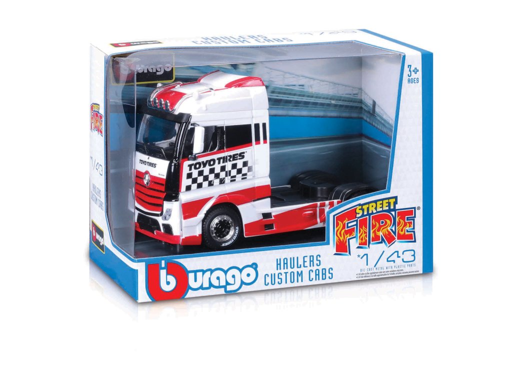 Haulers Custom Cabs modely kamionů Bburago v měřítku1:43 z kolekce Street Fire jsou sbírkou modelů s vysokým důrazem na přesnost detailů. Modely jsou vyrobeny z litého kovu s plastovými detaily. Assort je náhodný mix modelů. Výběr nelze ovlivnit. Modely v assortu: M–B Actros Gigaspace červeno-bílá, M–B Actros Gigaspace stříbrná, Scania 770 S modrá, Scania 770 S černo-červená, Volvo FH16 Globetrotter 750 XXL červeno-černá, Volvo FH16 Globetrotter 750 XXL žlutá. Baleno v krabičce. Nevhodné pro děti do 3 let. Rozměry balení: 13,3 x 18 x 9,7 cm. Věk: 3+Dodatočné parametre
