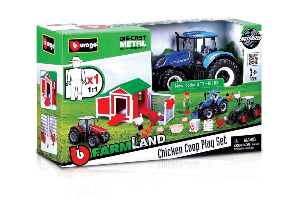 Herní sada kurník s traktorem z kolekce Farmland přináší dětem nekonečné hodiny zábavy. Sada obsahuje model traktoru, kurník, figurku panáčka, figurky zvířat a další příslušenství. Kurník, figurky a příslušenství jsou vyrobeny z plastu. Traktory z kolekce Farmland jsou sbírkou modelů s vysokým důrazem na přesnost detailů. Modely traktorů jsou vybaveny setrvačníkem a jsou vyrobeny z litého kovu s plastovými detaily. Assort je náhodný mix modelů. Výběr nelze ovlivnit. Sady mohou obsahovat různé modely traktorů. Modely v assortu: New Holland T7.315 HD, Fendt 1050 Vario, Massey Ferguson 8740S. Baleno v krabičce. Nevhodné pro děti do 3 let. Rozměry balení: 15 x 24,5 x 9 cm. Věk: 3+Dodatočné parametre