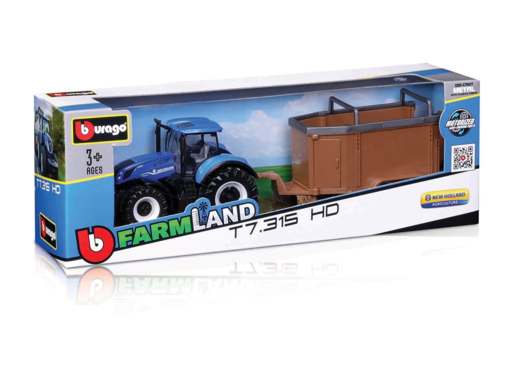 Modely traktorů s přívěsem a setrvačníkem z kolekce Farmland jsou sbírkou modelů s vysokým důrazem na přesnost detailů. Modely o velikosti 10 cm jsou vyrobeny z litého kovu s plastovými detaily. Assort je náhodný mix modelů. Výběr nelze ovlivnit. Modely v assortu: New Holland T7.315 HD s přívěsem na přepravu hospodářských zvířat, New Holland T7.315 HD s výklopným přívěsem, Fendt 1050 Vario s přívěsem na balíky slámy, Fendt 1050 Vario s přívěsem s oboustranným vyklápěním, Massey Ferguson 8740S s přívěsem na balíky slámy, Massey Ferguson 8740S s výklopným přívěsem, Valtra N174 s výklopným přívěsem, Case IH Optum CVX 300 s nízkopodlažním přívěsem. Baleno v krabičce. Nevhodné pro děti do 3 let. Rozměry balení: 10,8 x 32 x 7,8 cm. Věk: 3+Dodatočné parametre