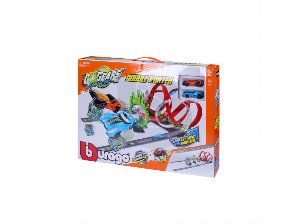 Loop set závodní dráha Double Vortex z kolekce GoGears Extreme přináší dětem nekonečné hodiny zábavy. Double Vortex je vybavená spoustou smyček, skokanským můstkem, ohnivou obručí a crash boxy. Trať lze překonfigurovat. Součástí sady jsou dvě závodní autíčka, která fungují na principu zatáhni a jeď. Dojezd autíček je až 25 metrů a jejich rychlost přesahuje 840 km/h. Dráha je vyrobena z odolného plastu. Baleno v krabičce. Nevhodné pro děti do 3 let. Rozměry složené dráhy: 48 x 25 x 110 cm. Rozměry balení: 35,5 x 50,3 x 8 cm. Věk: 3+Dodatočné parametre