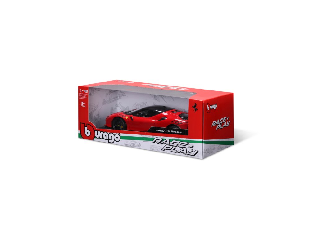 Modely automobilů Ferrari v měřítku 1:18 z kolekce RACE+PLAY jsou sbírkou krásného designu s vysokým důrazem na přesnost detailů. Detailní provedení motorových prostor, interiéru, kol a odznaků. Modely jsou vyrobeny z litého kovu s plastovými detaily. Většina modelů z kolekce má otevírací dveře, kufr nebo kapotu. Všechny modely v kolekci mají plně funkční řízení a zavěšení všech kol. Model je namontován na výstavním stojánku. Baleno v krabičce. Nevhodné pro děti do 3 let. Rozměry balení: 12,6 x 33,5 x 16,5 cm. Věk: 3+Dodatočné parametre