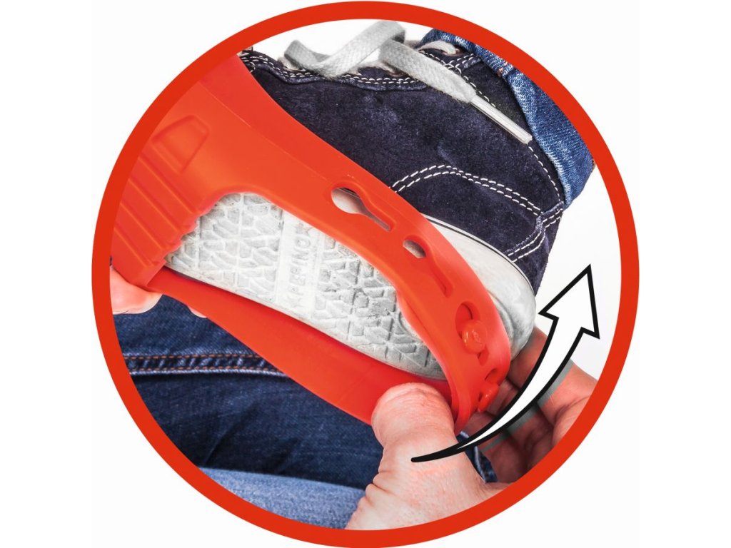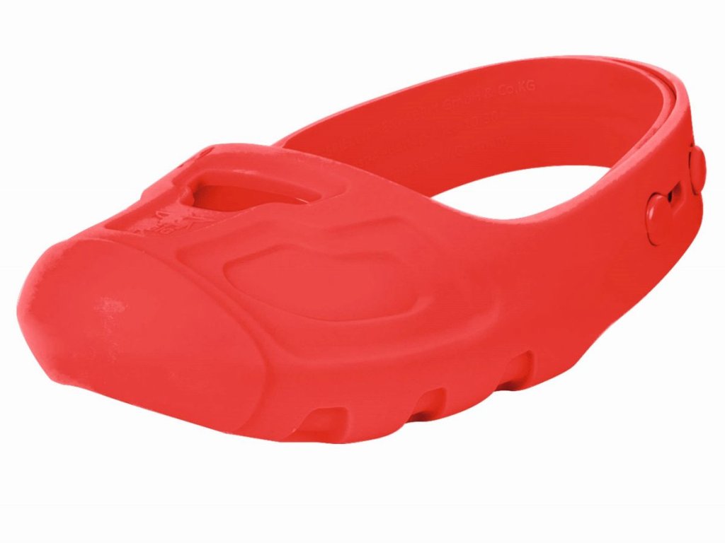 Ochranné návleky na topánky v červenej farbe pre jazdu napr. na odrážadle, bicykli apod. Nezanechávajú stopy na podlahe, protišmyková úprava. Ľahko nastaviteľná veľkosť pomocou háčikov a očiek. Vhodné pre detskú obuv s veľkosťou 21-27.