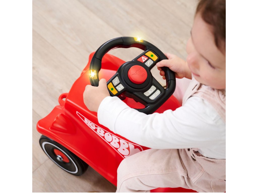 Multifunkčný volant so svetelnými a zvukovými efektmi, vodeodolný. Kompatibilný so všetkými Bobby Car odrážadlami od roku 2010 (Classic, Neo, Next). 8 rôznych zvukov, funkcia: ukazovateľ odbočenia vľavo/vpravo (LED svetlo) + prísl. zvuk, zvuk zamykanie auta, klaksón, zvuk vytáčania tel. čísla a zvonenia, zvuk štartovania a rádio.Dodatočné parametre
