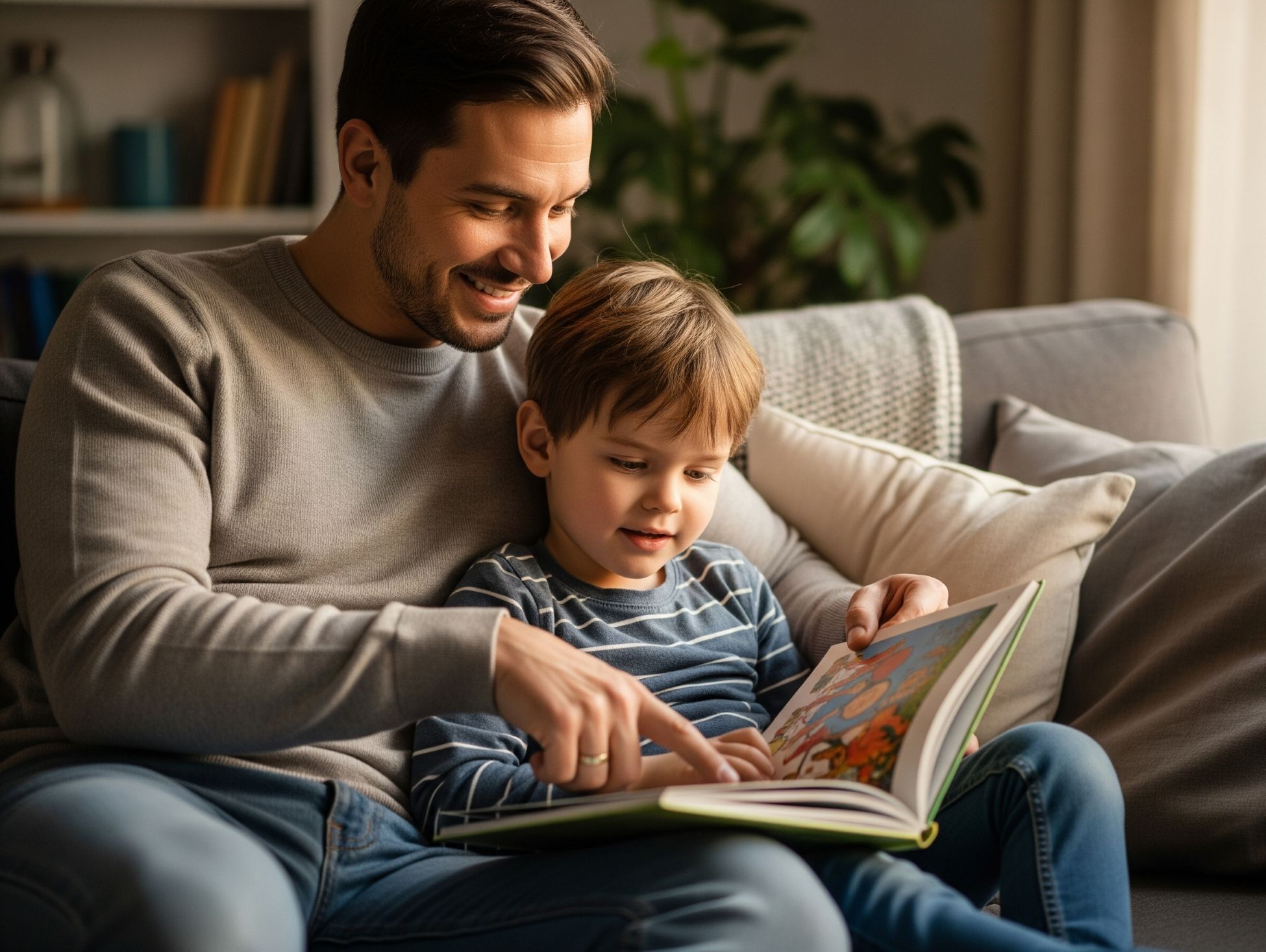 Knihy, uspávanky a detské pesničky sú mimoriadne dôležité. Čítanie nahlas podporuje rozvoj slovnej zásoby, učí dieťa, že slová majú zmysel, a zároveň mu pomáha s rozpoznávaním rytmu reči. Pustite si spolu detské pesničky a spievajte si, alebo si hrajte s riekankami.