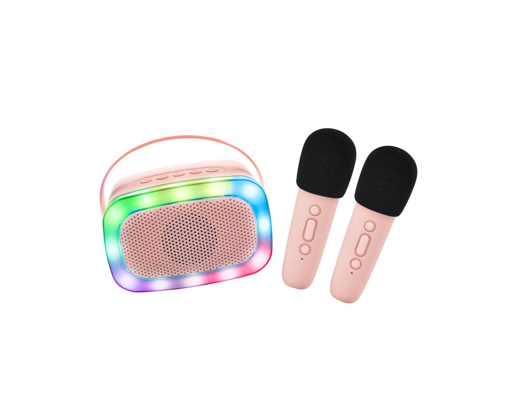 Bluetooth Karaoke párty set + 2 mikrofóny Rose Spievajte a zabávajte sa kdekoľvek a kedykoľvek Ružový karaoke set od Lalarma je perfektný pre každé dieťa, ktoré miluje hudbu. S Bluetooth pripojením ho môžete ľahko spojiť so svojím smartfónom alebo tabletom a púšťať si hudbu priamo z obľúbeného zariadenia alebo si svoje obľúbené pesničky môžete nahrať na TF/SD kartu. Vďaka 2 mikrofónom a žiarivým LED svetlám, s 5 svetelnými režimami, bude tento karaoke set hlavnou hviezdou každej párty. Reproduktor ponúka štyri zábavné hlasové efekty, ktoré zaisťujú nekonečnú zábavu pre vaše malé talenty. Karaoke set pre hudobné talenty Prenosný reproduktor môžu deti zobrať kamkoľvek - na záhradu, do parku alebo na dovolenku. Tento šikovný reproduktor nielenže hrá skvelú hudbu, ale obsahuje aj mikrofóny, takže deti môžu spievať a baviť sa s priateľmi na každom mieste. Vďaka gumovému povrchu a praktickej silikónovej šnúrke je karaoke set nielen štýlový, ale aj odolný. Navyše, je vyrobený z recyklovaného plastu, takže chráni aj našu planétu.Technické špecifikácie: 4 hlasové efekty, LED svetlá s 5 svetelnými režimami,2x bluetooth mikrofón a reproduktor,TF/SD micro karta,USB port,bezdrôtové zariadenie,vyrobené z recyklovateľného plastu.Reproduktor: Bezdrôtové pripojenie: Bluetooth v5.0Výkon reproduktora: 46WFrekvencia: 20Hz - 20kHzEcho efekt: Áno Napájanie: DC5V 1A Batéria: 1800mAh (18650) Nabíjanie: USB-C nabíjací portDoba nabíjania: cca 2 hodinyVýdrž reproduktora: 5 hodínRozmery: 90 x 75,3 x 65 mmHmotnosť: 340 g Mikrofóny: Bezdrôtové pripojenie: Bluetooth v5.0 Pracovné napätie: 3,7V Frekvencia: 20Hz - 20kHz Echo efekt: Áno Napájanie: DC5V 1A Batéria: 1200mAh (18650) Nabíjanie: USB-C nabíjací port Doba nabíjania: cca 2-4 hodinyVýdrž mikrofónov: 5 hodínRozmery: 135,8 x O 37,7 mm Hmotnosť: 100 gSúčasťou balenia je USB nabíjací kábel.Dodatočné parametre