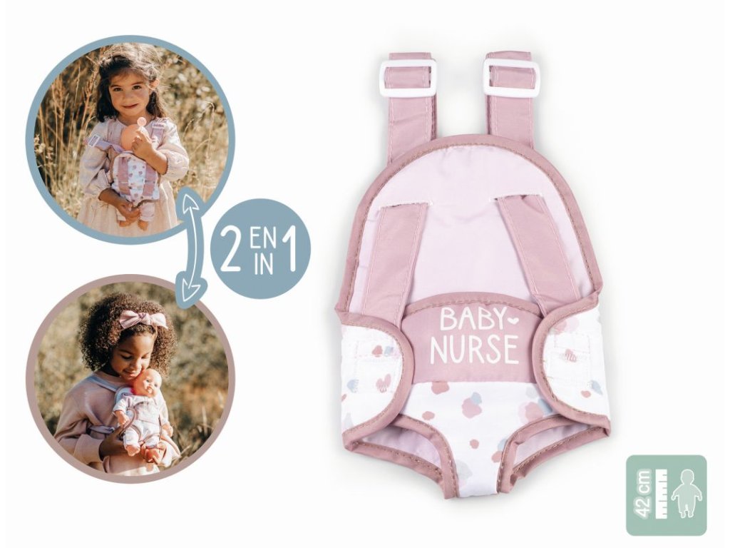 V tomto praktickom nosidle sedí bábika bezpečne a pohodlne. 2 možnosti nosenia bábiky - otočená čelom smerom von alebo čelom k dievčatku. Dĺžkovo nastaviteľné ramenné popruhy zaisťujú maximálne pohodlie ako pri skutočnom nosidle. Vhodné pre všetky bábiky do 42 cm (bábika nie je súčasťou balenia). Rozmery produktu (D׊×V): 18,5 × 1 × 24 cm.Dodatočné parametre