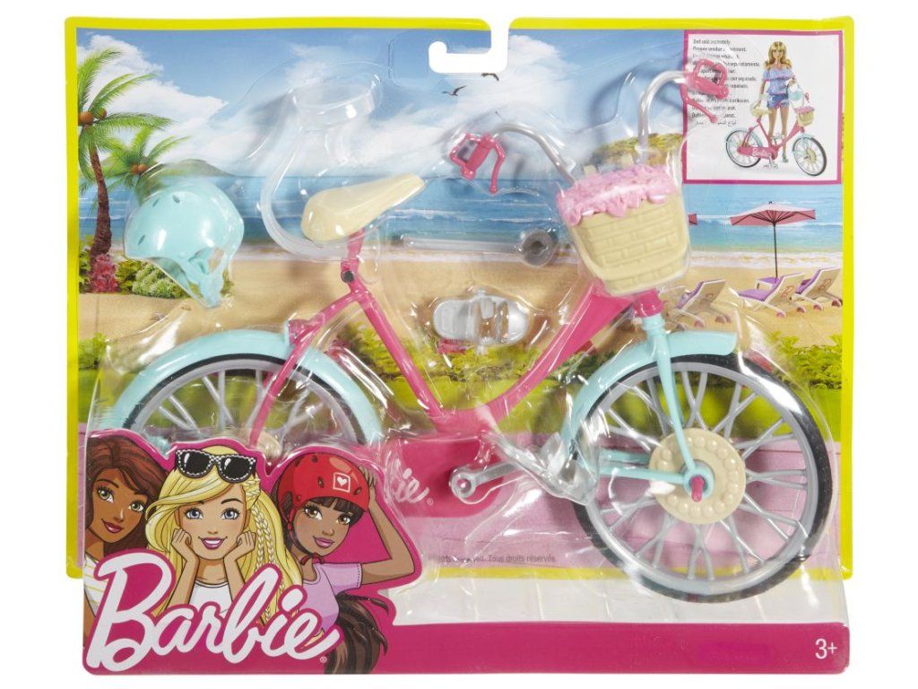 Tento bicykel pre bábiku Barbie® je pripravený na jazdu plnú fantázie! Ružový bicykel, modré blatníky a strieborné časti sú tak nádherné a vďaka skutočným funkčným pedálom a kolesám je jazda na bicykli hračka. Umiestni bábiku Barbie® (predáva sa samostatne) na sedadlo kolesa, kde ju drží klip. Zasuň jej nohy do pedálov a ruky na riadidlá, potom zatlač a uvidíš, ako bábika ide! Modrá helma zaistí bábike Barbie® bezpečia. Košík s ružovými kvetmi vpredu tiež zdobí jej bicykel! Vyrazte na krátku prechádzku alebo šliapnite do pedálov a vydajte sa v ústrety dobrodružstvu - tento bicykel je pripravený na jazdu! Súčasťou je bicykel Barbie® s košíkom a kvetmi a helmou. Bábika nie je súčasťou balenia. Farby a vzhľad výrobku sa môžu líšiť.Dodatočné parametre