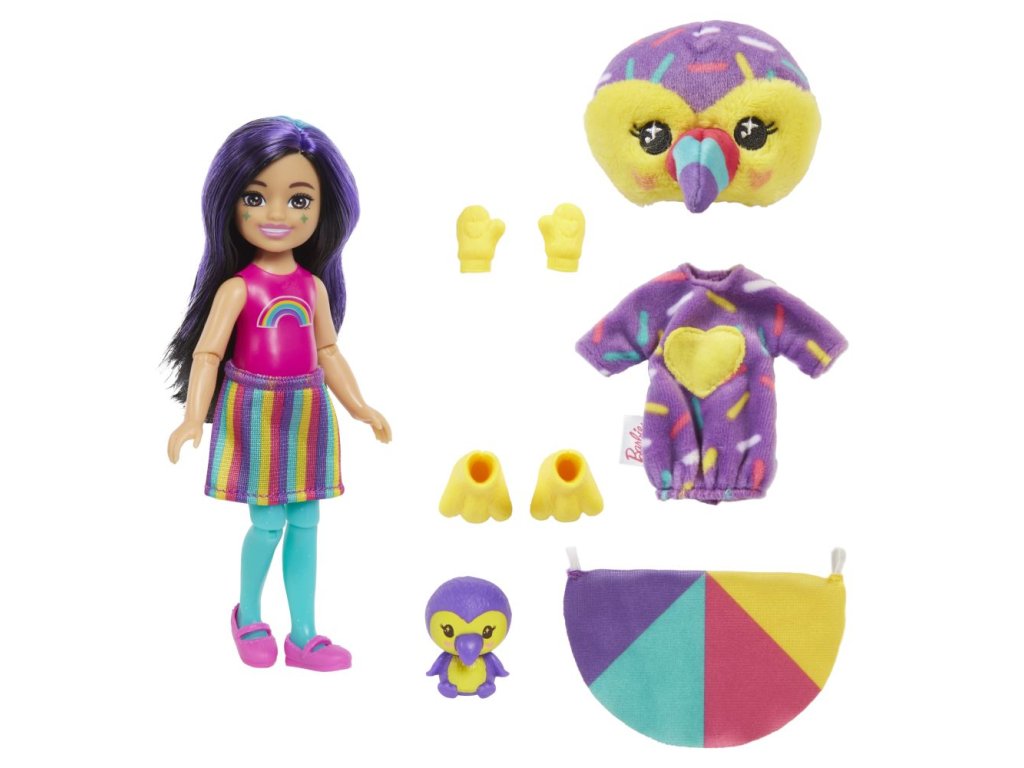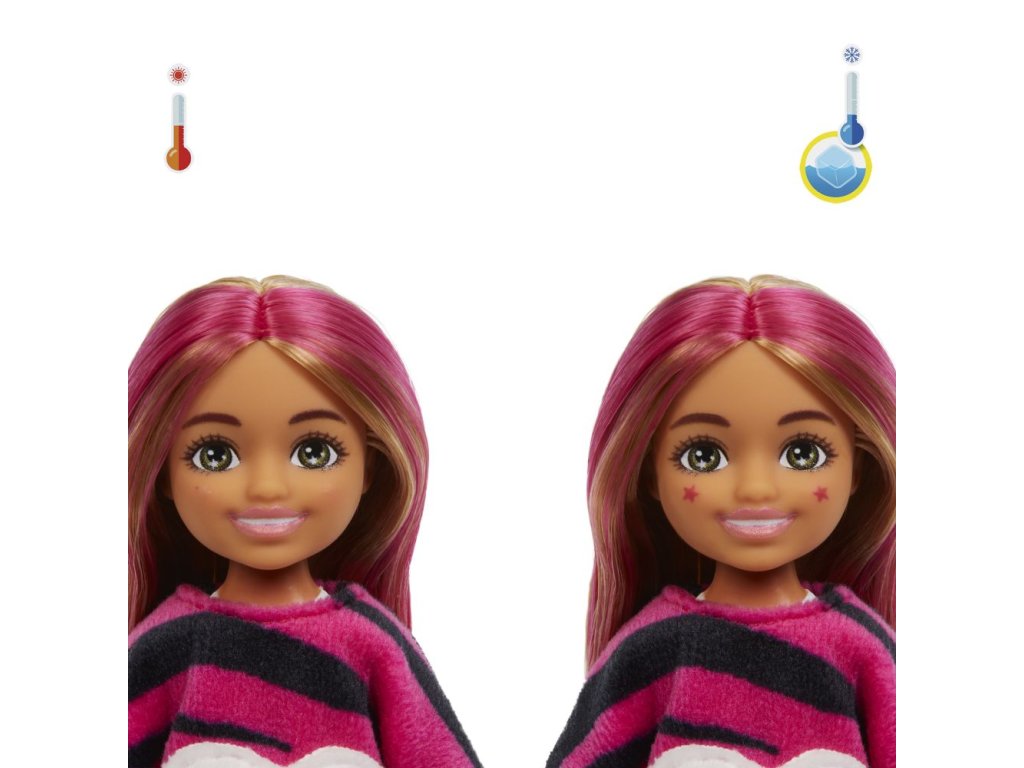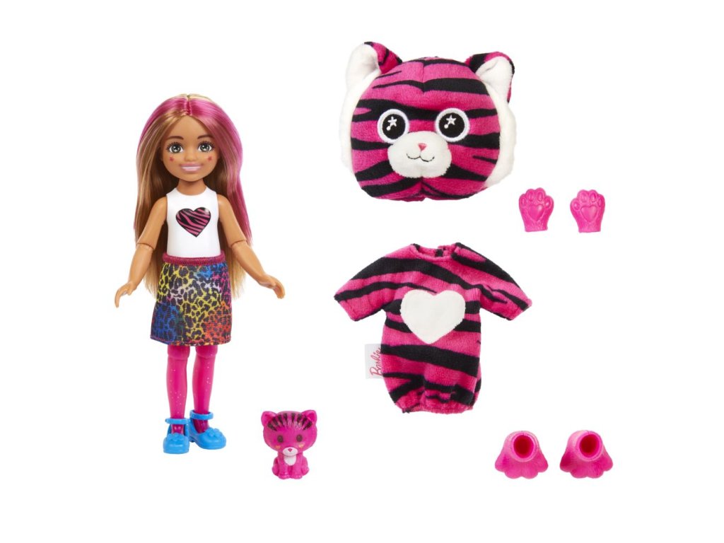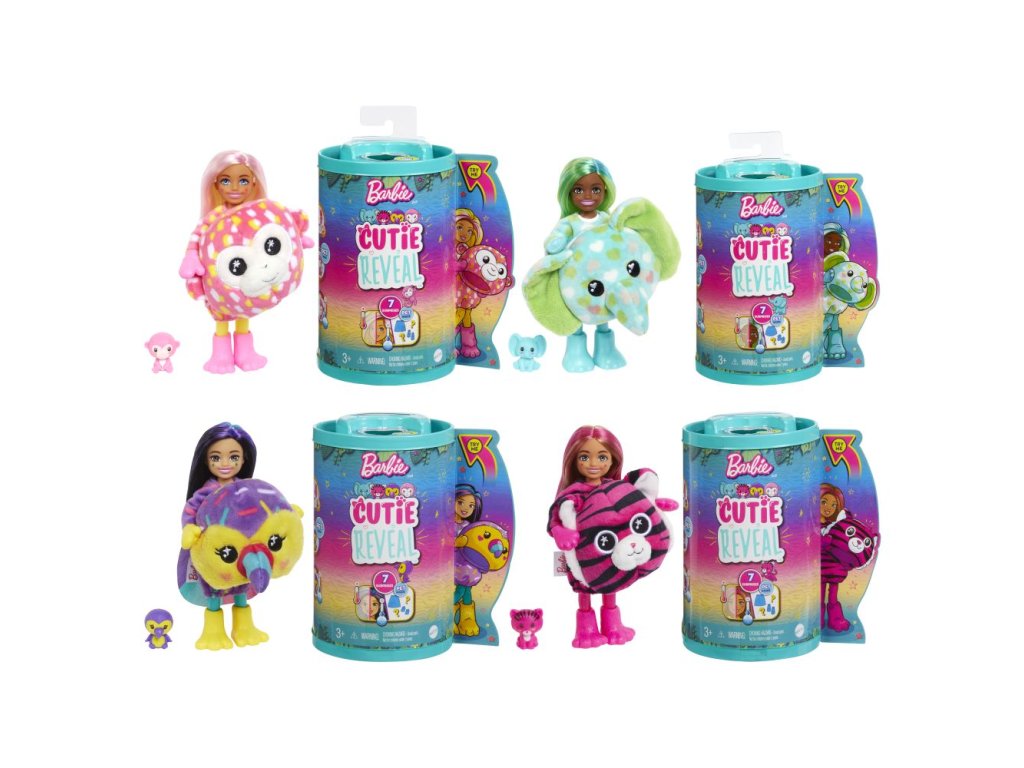 Bábiky Barbie® Cutie Reveal™ Chelsea Džungľa poteší deti prekvapením pri rozbaľovaní, ktoré zahŕňa bábiku Chelsea™, štýlové módne doplnky a hru so zmenou farieb. Barbie ® Cutie Reveal ™, to nie je len najväčšie a najúžasnejšie prekvapenie na svete, ale aj hneď dve hračky v jednom jedinom balení! Plyšový kostým skrýva pravú identitu bábiky pod maskou roztomilého zvieratka. Otvorte pestrofarebný obal, v ktorom nájdete bábiku v plyšovom kostýme zvieratka a odhaľte, ktorá bábika sa v kostýme skrýva! Ďalším prekvapením sú tajomné vrecká, ktoré ukrývajú doplnky. Deti si zamilujú objavovanie všetkých roztomilých prekvapení v tejto sérii Barbie® Cutie Reveal™. Predávajú sa samostatne podľa aktuálnej ponuky. Bábiky nevedia samostatne stáť. Farby a vzhľad výrobku sa môžu líšiť.Dodatočné parametre