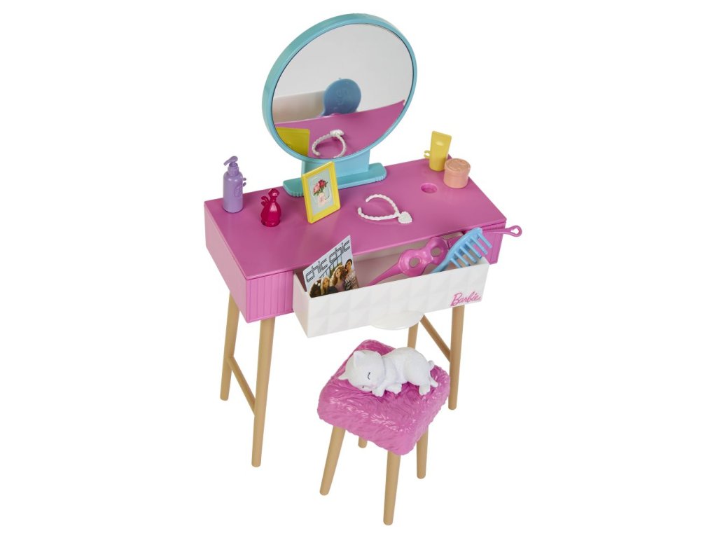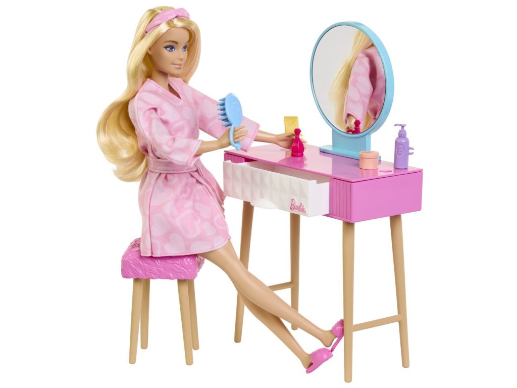Tento herný set Barbie® Spálňa s bábikou bude inšpiráciou pre milé ranné aj večerné príbehy! Bábika Barbie® je dodávaná s ospalým mačiatkom a viac ako 15 tematickými doplnkami do spálne. Barbie® sa pohodlne uvelebí v rozkošnom pyžamovom komplete s potlačou a nadzuje si papučky. Jej huňatý ružový župan je extra hebký! Nábytok, ako je posteľ, nočný stolík a toaletný stolík, vytvára scénu pre najrôznejšie možnosti hrania rolí, či už ide o prípravu na deň alebo večerné ukladanie na spánok s horúcim kakaom a časopisom. Doplnky pre bábiku Barbie® zahŕňajú stylingové prvky, ako sú čelenka a maska na spanie, alebo dekoračné predmety, ako sú lampa a rastlina! Bábika nevie samostatne štát. Farby a vzhľad výrobku sa môžu líšiť.Dodatočné parametre