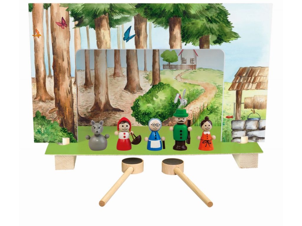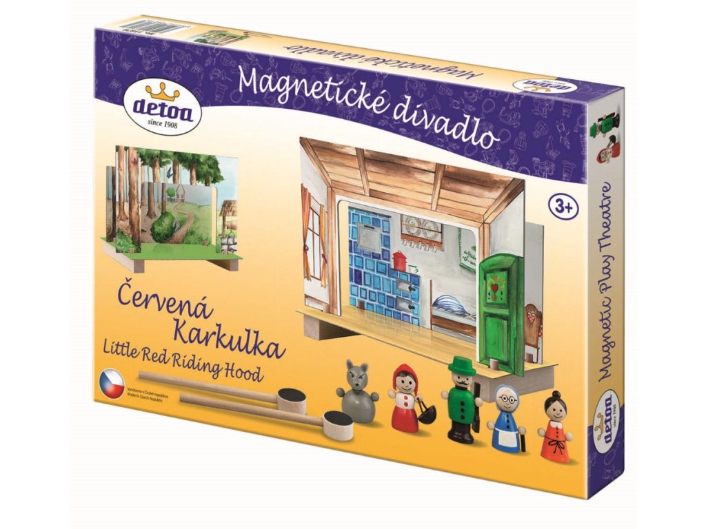 Magnetické divadlo Červená Čiapočka je výborná zábava pre malých aj veľkých na motívy obľúbenej rozprávky. Vo figúrkach je vlepený magnet ktorý sa priťahuje k magnetu vo vodítku. Hra rozvíja detskú fantáziu a kreativitu pri vymýšľaní vlastných rozprávkových príbehov. Výrobok spĺňa požiadavky EÚ na bezpečnosť hračiek a je vhodný pre deti od 3 rokov. Balené v papierovej krabici s rozmermi 335x230x35 mm. Obsah balenia: 2 drevené podstavce, obojstranné kulisy z tvrdého papiera, 2 vodiace paličky a 5 figúrok.Dodatočné parametre
