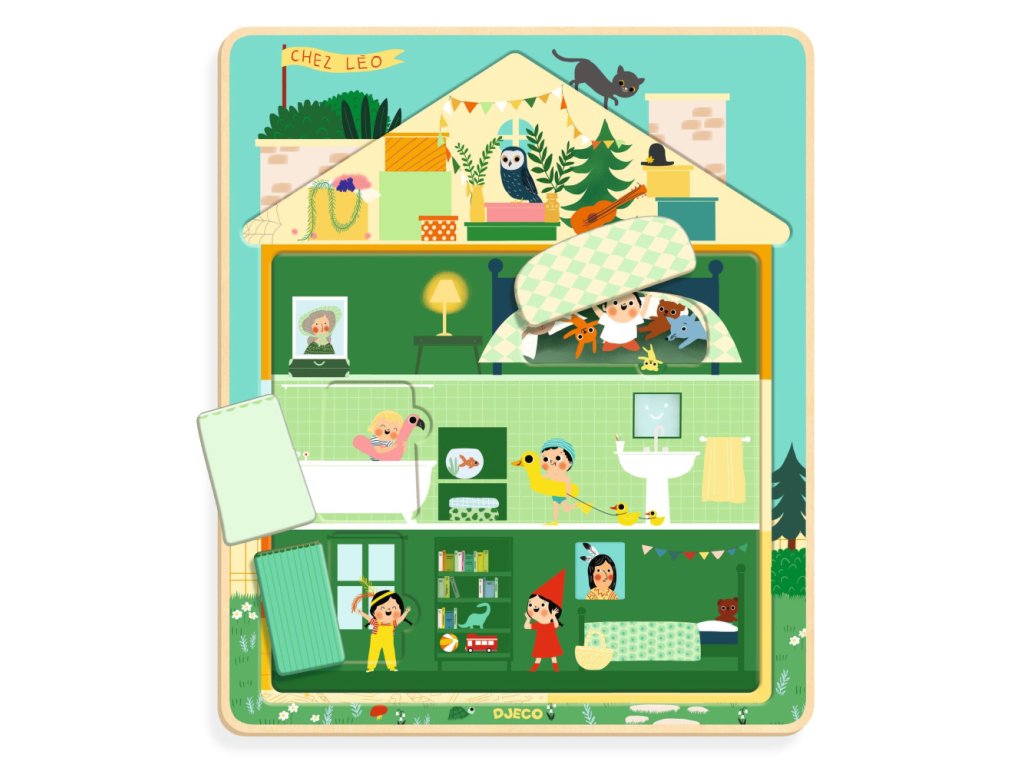 Chez Leo: 12-dielne puzzle s 3 vrstvamiTrojnásobná výzva: vrstvené puzzle pre zábavu a učenieChez Léo – 12-dielne puzzle s 3 vrstvami sú originálna kreatívna hra od značky Djeco, ktorá deťom ponúka viac než obyčajné skladanie dielikov. Každé puzzle sa skladá z troch vrstiev – základnej vrstvy obrázka, strednej vrstvy s ďalšími detailmi a vrchnej vrstvy s finálnymi prvkami, ktoré deti postupne odhaľujú. Tento viacúrovňový princíp prináša novú dimenziu skladania, podporuje zvedavosť a predlžuje hru. Puzzle zobrazuje milú scénu so zvieratkami a detailmi, ktoré deti lákajú skúmať – od základného tvaru až po drobné doplnky v ďalších vrstvách. Je ideálne pre prvé skladacie pokusy a zároveň ponúka vyššiu úroveň výzvy ako klasické 12-dielne puzzle.Prečo sú tieto puzzle skvelé pre deti3 vrstvy skladania – postupné odhaľovanie detailov pri každom krokuZábavná a farebná ilustrácia, ktorá drží pozornosťRozvoj jemnej motoriky a vizuálneho vnímaniaVhodné ako prvé puzzle pre deti aj ako kreatívna zábavaIdeálne pre domáce aj vzdelávacie aktivityObsah balenia12 dielikov rozdelených do 3 vrstievIlustrovaný návod / náhľad obrázkaKartónová podložka pre jednoduchšie skladanieVhodné pre deti od 2 rokov.Dodatočné parametre