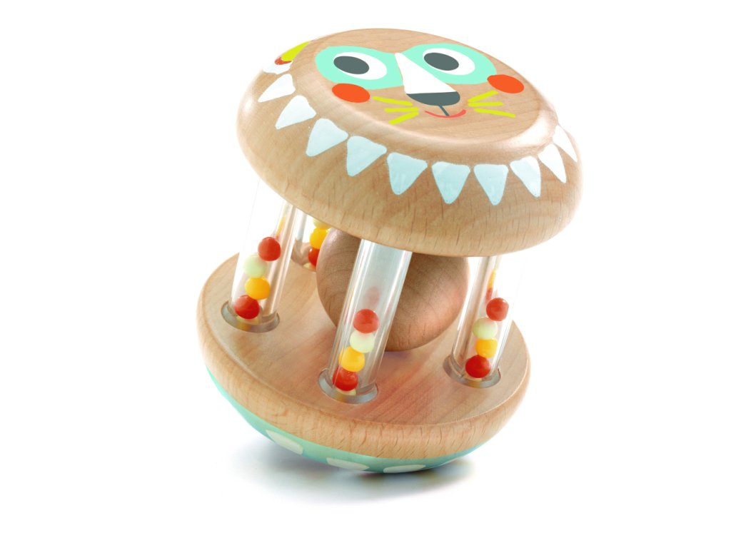 Chrastítko Lev Chrastítko, ktoré poteší milovníkov zvieratiek Hrkálka s priateľskou tvárou leva kombinuje 2 veľkosti guliek: malé plastové v priehľadných plastových rúrkach a väčšiu drevenú uprostred nich. Dieťa môže hrkálku uchopiť buď za rúrky alebo za koncové časti Vďaka zaoblenému okraju koncových častí môže hrkálkou na rovnej ploche, napr. na podlahe, pohojdávať. Hračka patrí do produktovej série Baby White, ktorá sa vyznačuje jemnými farbami a vyváženou kombináciou čistého dreva a priehľadného plastu.Odporúčaný vek: 3m+Rozmery hračky: 5,5 x 6 cmDodatočné parametre