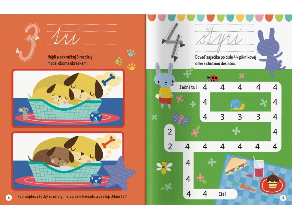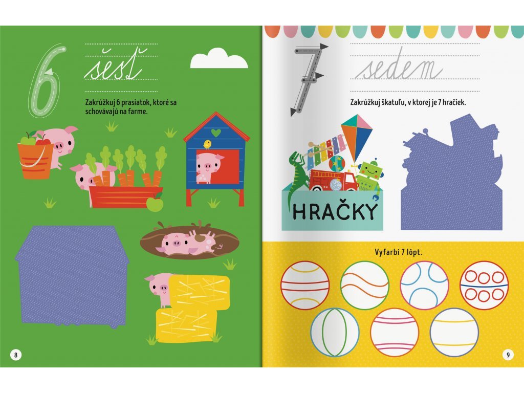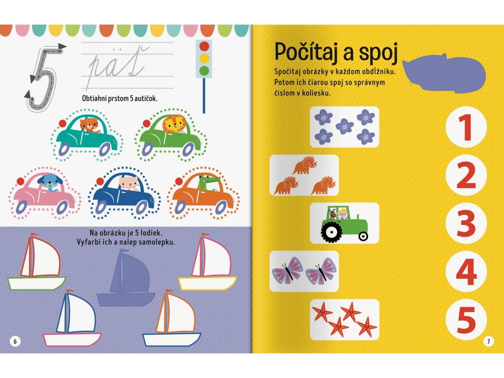 Čísla - Veľké samolepky pre malé ruky Precvič si písanie čísel a ľahké počty do 10 v tejto knižke plnej aktivít! Kresli, vyfarbuj, dopĺňaj a nalepuj samolepky k aktivitám na každej stránke. Poď si precvičiť písanie čísel a jednoduché počítanie od 1 do 10. V tejto knižke plnej aktivít a hier na teba čaká množstvo úloh a výziev. Precvič si písanie čísel a ľahké počítanie, vyfarbi veveričku alebo doplň číselný rad na tele húsenice. Dolepuj samolepky, vyfarbuj obrázky a dopĺňaj! Obsahuje množstvo aktivít s číslami, ktoré rozvíjajú zručnosti. Tento zošit s roztomilými samolepkami a úžasnou vytláčacou hrou domino ti zaistí plno zábavy!Dodatočné parametre