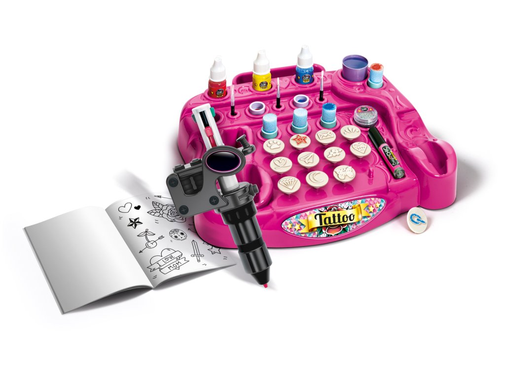 Pro milovníky tetování, super cool sada k vytvoření neuvěřitelných tetování od ruky nebo podle šablony! Pomocí speciálního pera na tělo s vyměnitelnými barevnými hroty se dívky mohou bavit vytvářením vlastních personalizovaných tetování, kreslením je ručně nebo pomocí šablon. Obsahuje také tělové barvy k obarvení vytvořených tetování, houbičky, aplikátory, šablony a knihu tetování s kresbami, tipy a prázdnými listy, abyste si mohli vytvořit svá oblíbená tetování! Rozvíjí kreativitu a zručnost. Rozměr balení: 45,1 x 31,1 x 7 cm Věk: 7+Dodatočné parametre