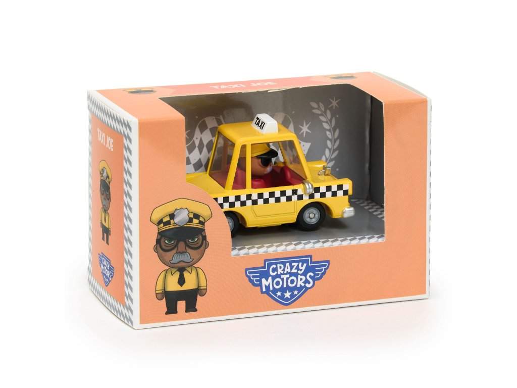 Crazy Motors: Taxi JoeKovové taxíkové autíčko pre mestské jazdy a príbehyTaxi Joe zo série Crazy Motors od značky Djeco je originálne kovové taxíkové autíčko, ktoré je vždy pripravené odviezť pasažierov po rušných uliciach mesta. Výrazný dizajn, hravé detaily a hladko sa otáčajúce kolieska robia z tohto autíčka ideálneho spoločníka pre každodenné mestské dobrodružstvá. Autíčko má pevné kovové telo, kvalitné spracovanie a kompaktný tvar vhodný pre detské ruky. Je určené na samostatnú hru aj na kombinovanie s ďalšími vozidlami a doplnkami zo sveta Crazy Motors.Čo môžu deti s autíčkom zažiťjazdy mestom a odvážanie pasažierovvymýšľanie príbehov zo života v mestepreteky a hry s ďalšími autíčkamikombinovanie s inými vozidlami Crazy Motorszbieranie rôznych modelov zo sériePrečo si vybrať Crazy Motors – Taxi Joeoriginálny taxíkový dizajnkvalitné kovové spracovaniehladký pohyb koliesoksúčasť zberateľskej série Crazy Motorsvhodné pre deti od 3 rokovObsah baleniakovové autíčko Crazy Motors – Taxi JoeDodatočné parametre